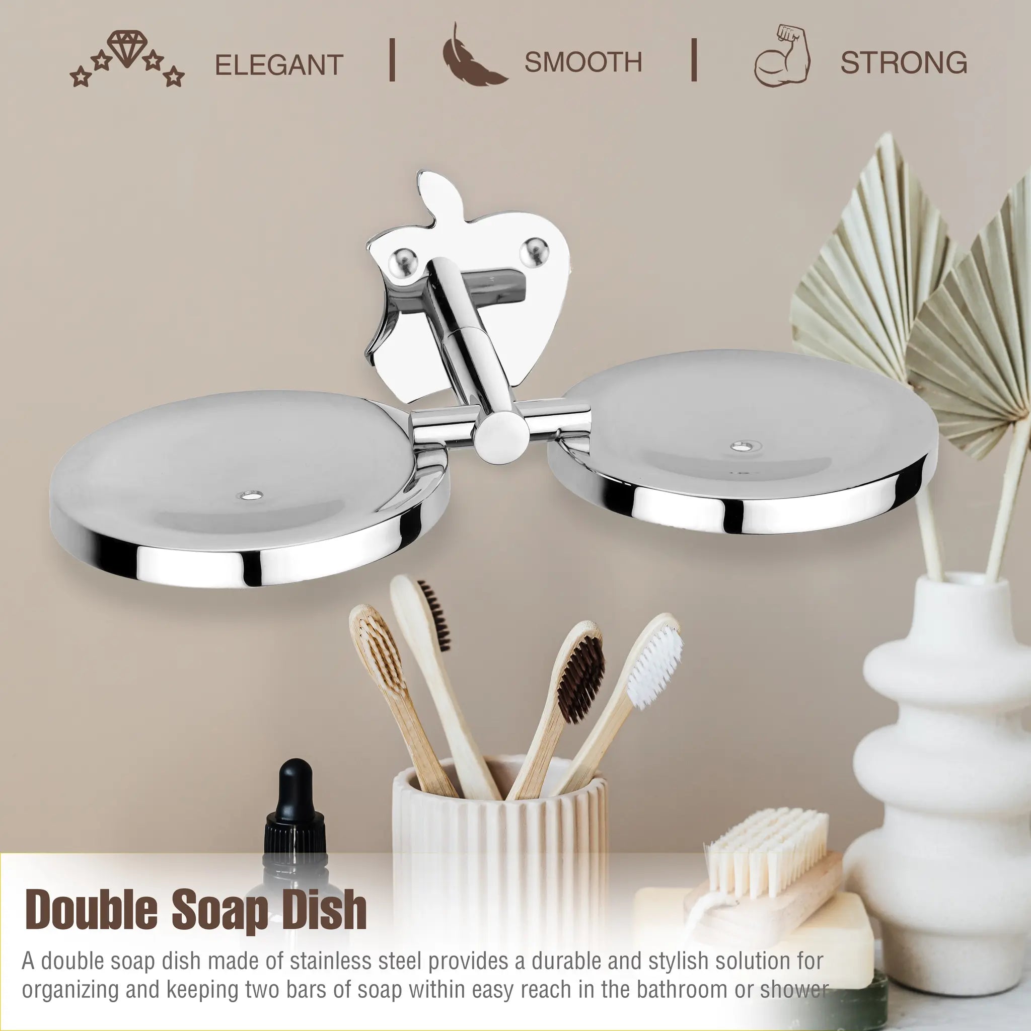 Apple Shape Stainless Steel SS304 Double Soap Dish (Silver)-by GLOXY®