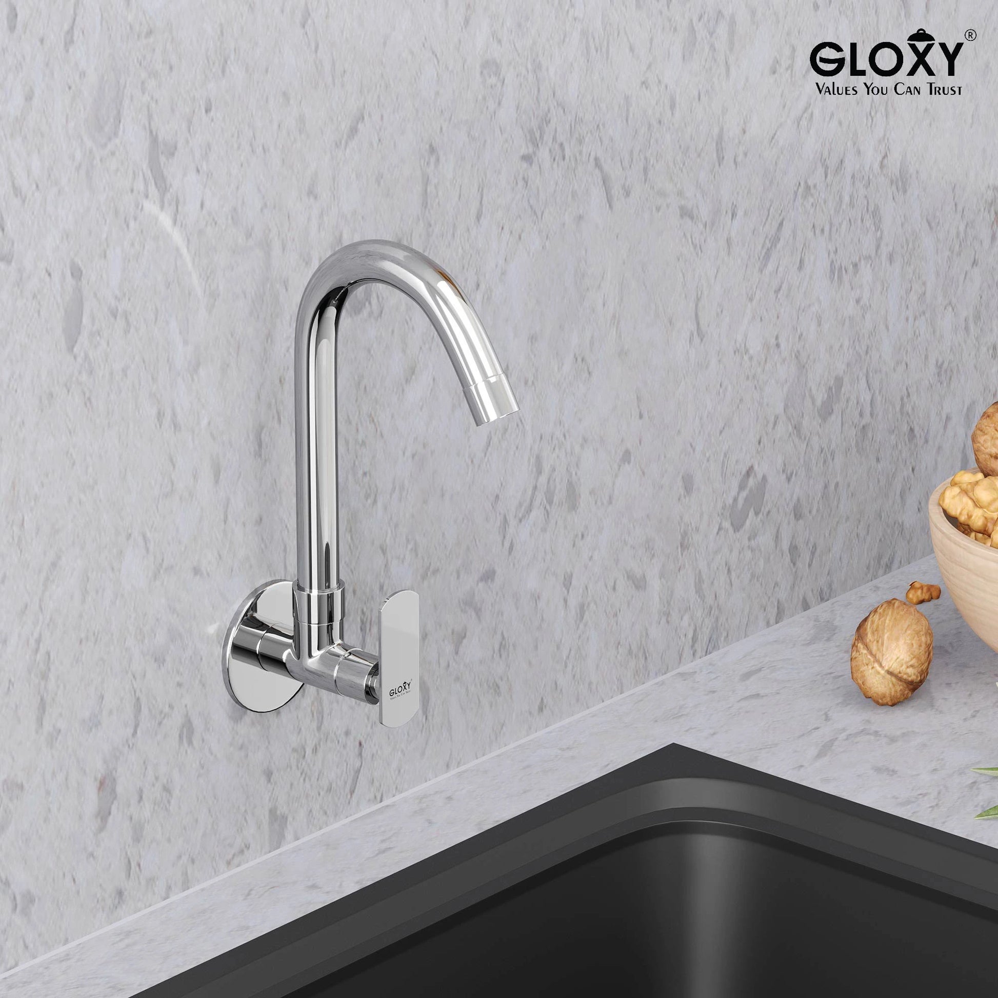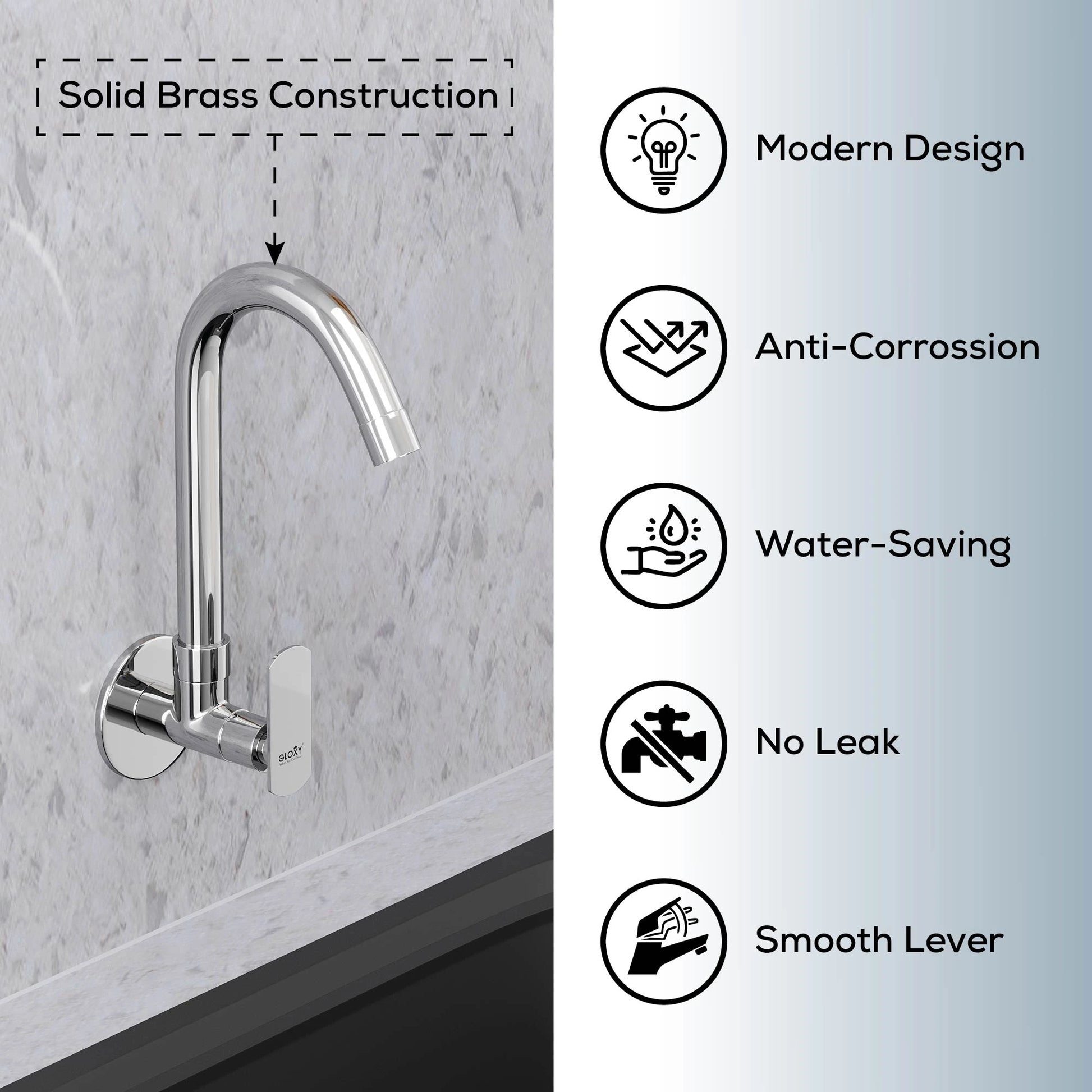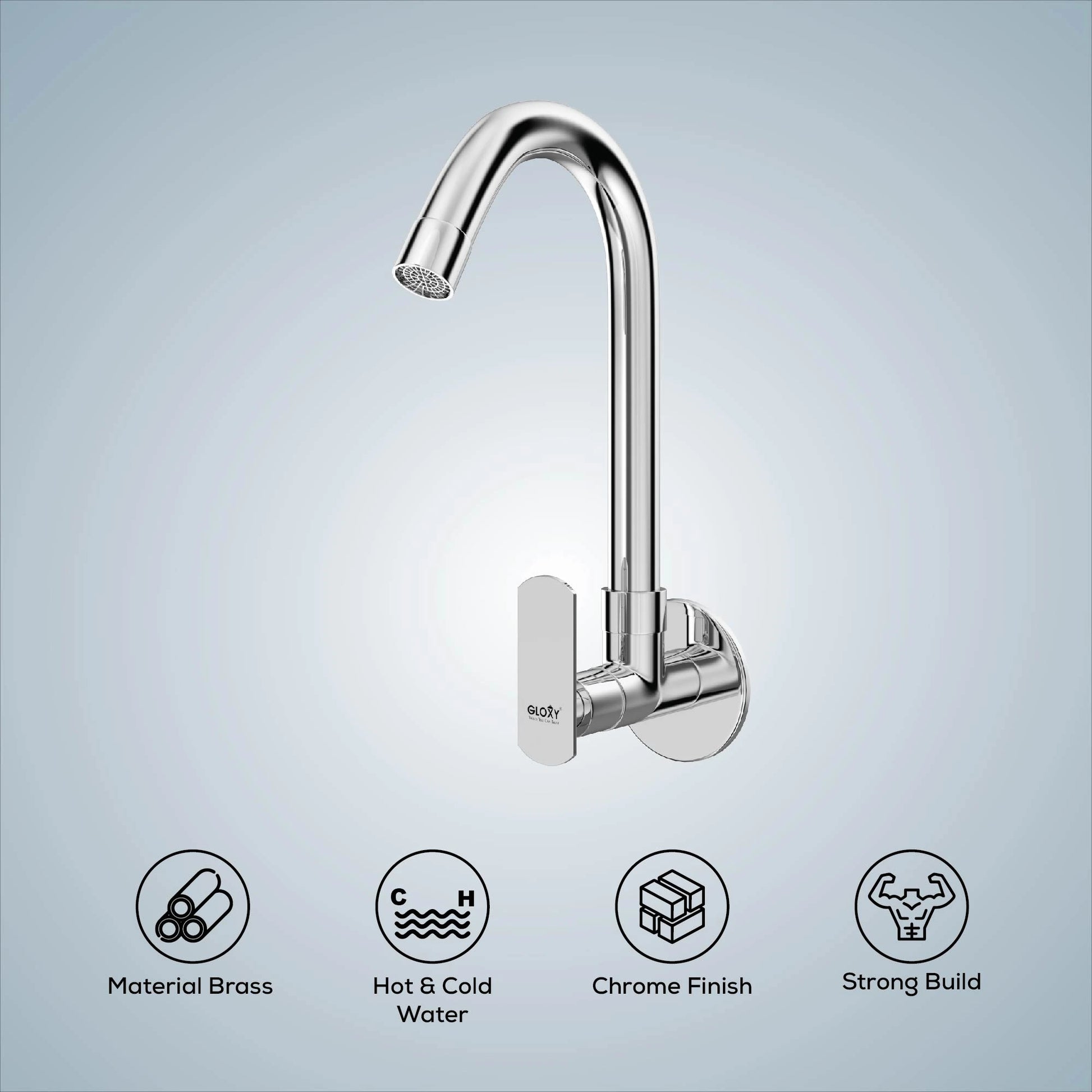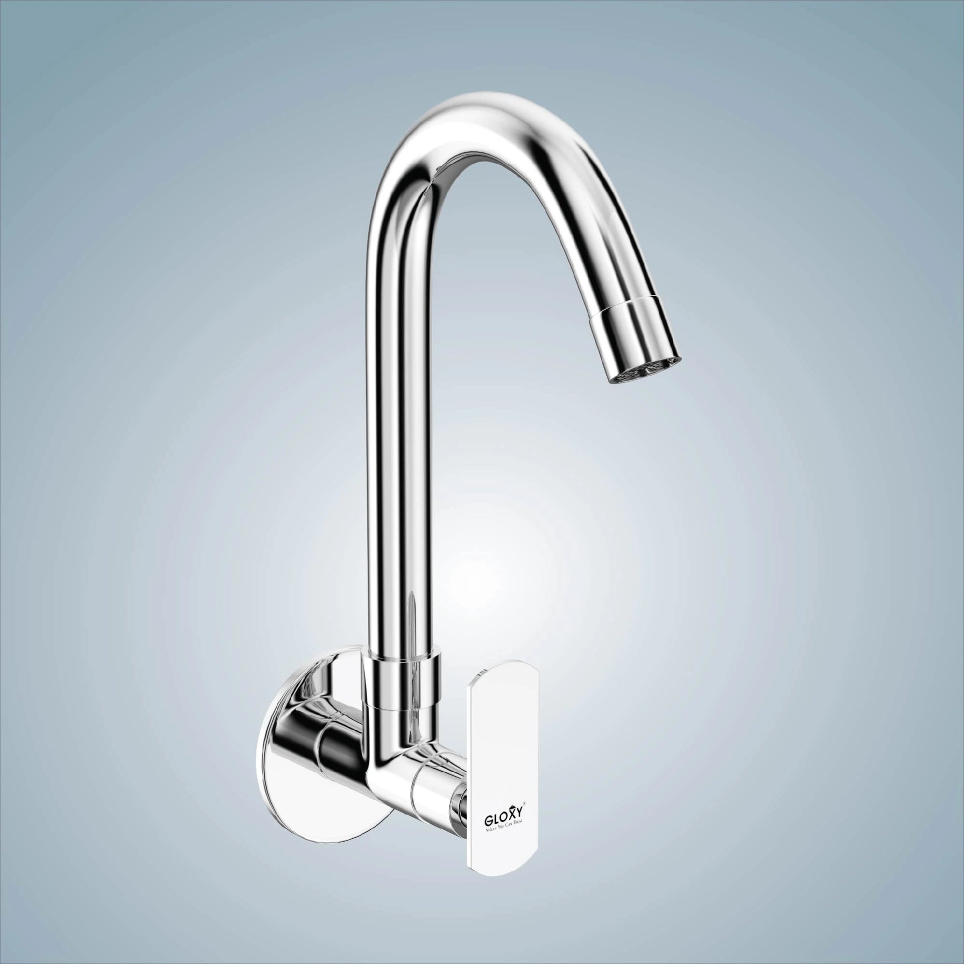 Chrome Finish Swivel Spout Wall Mount Swan Long Neck Faucet Tap Cock for Kitchen, Sink, Wash Basin (Jet+)-by GLOXY®