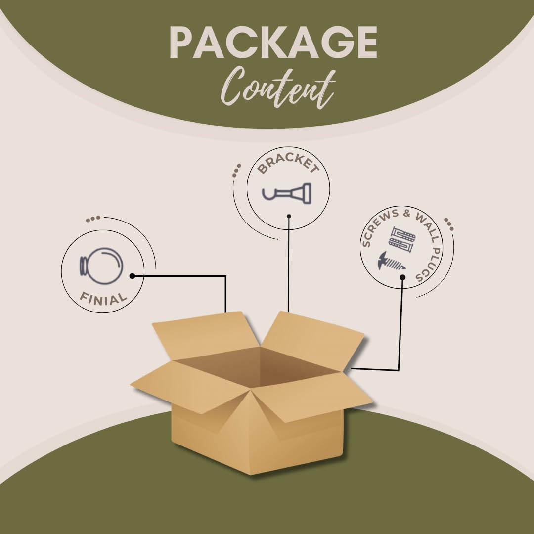 - Discover the complete curtain accessory set with brackets, holders, end caps, and hardware included. Never worry about buying separate pieces again.