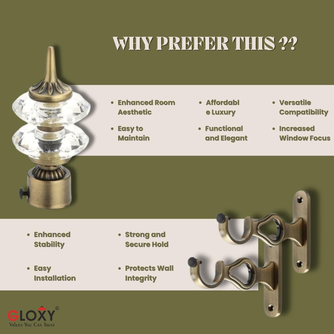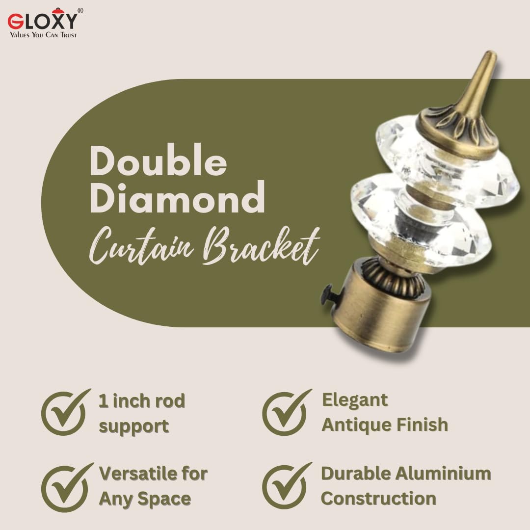 Double Diamond Aluminium Curtain Bracket with Cherry Support(Antique)-by GLOXY®