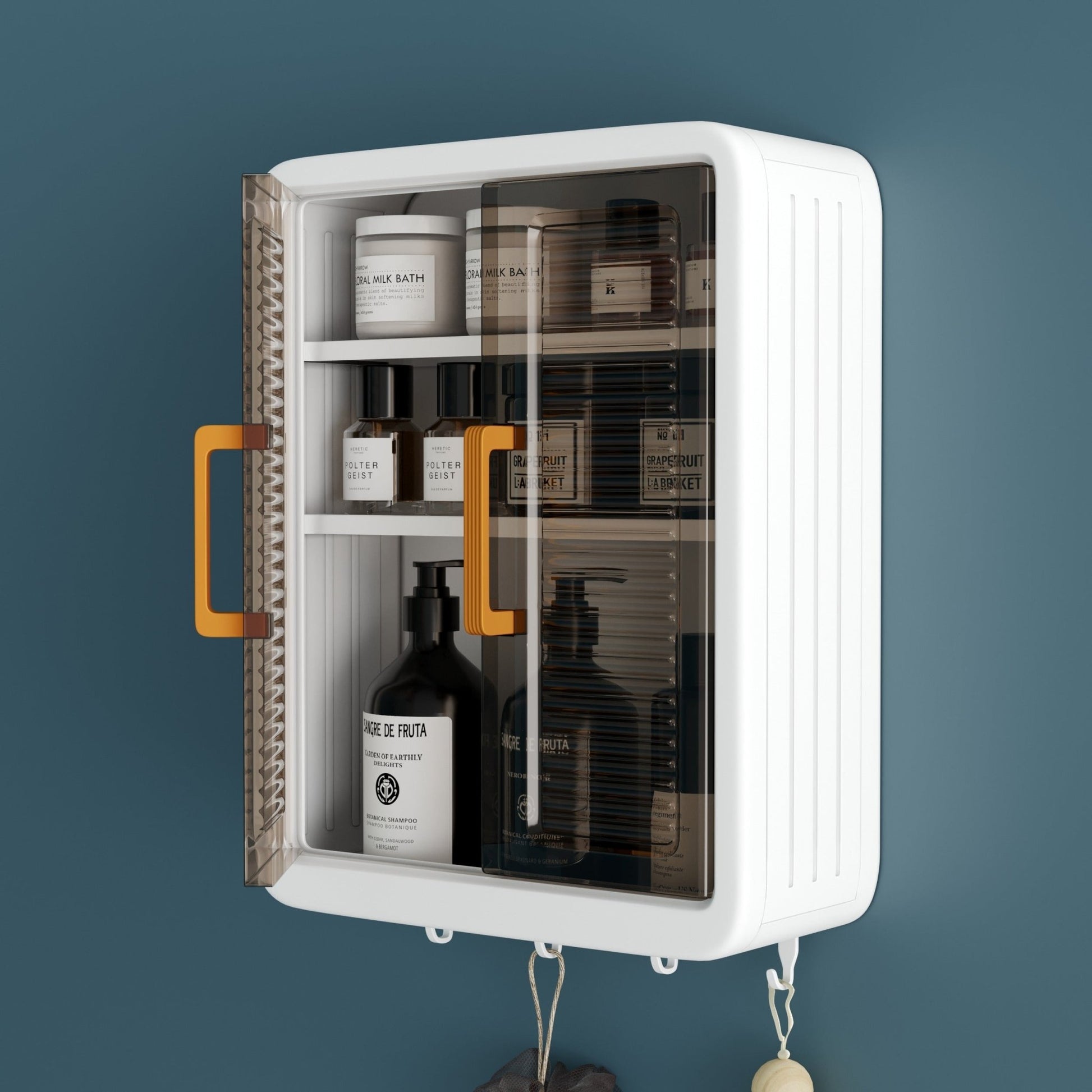 - 【Easy Installation】No need for drilling or complicated tools—this wall cabinet can be easily mounted on a smooth surface using adhesive hooks. The hassle-free setup saves time and effort, making it perfect for bathrooms, laundry rooms, kitchens, or even over-the-toilet areas.