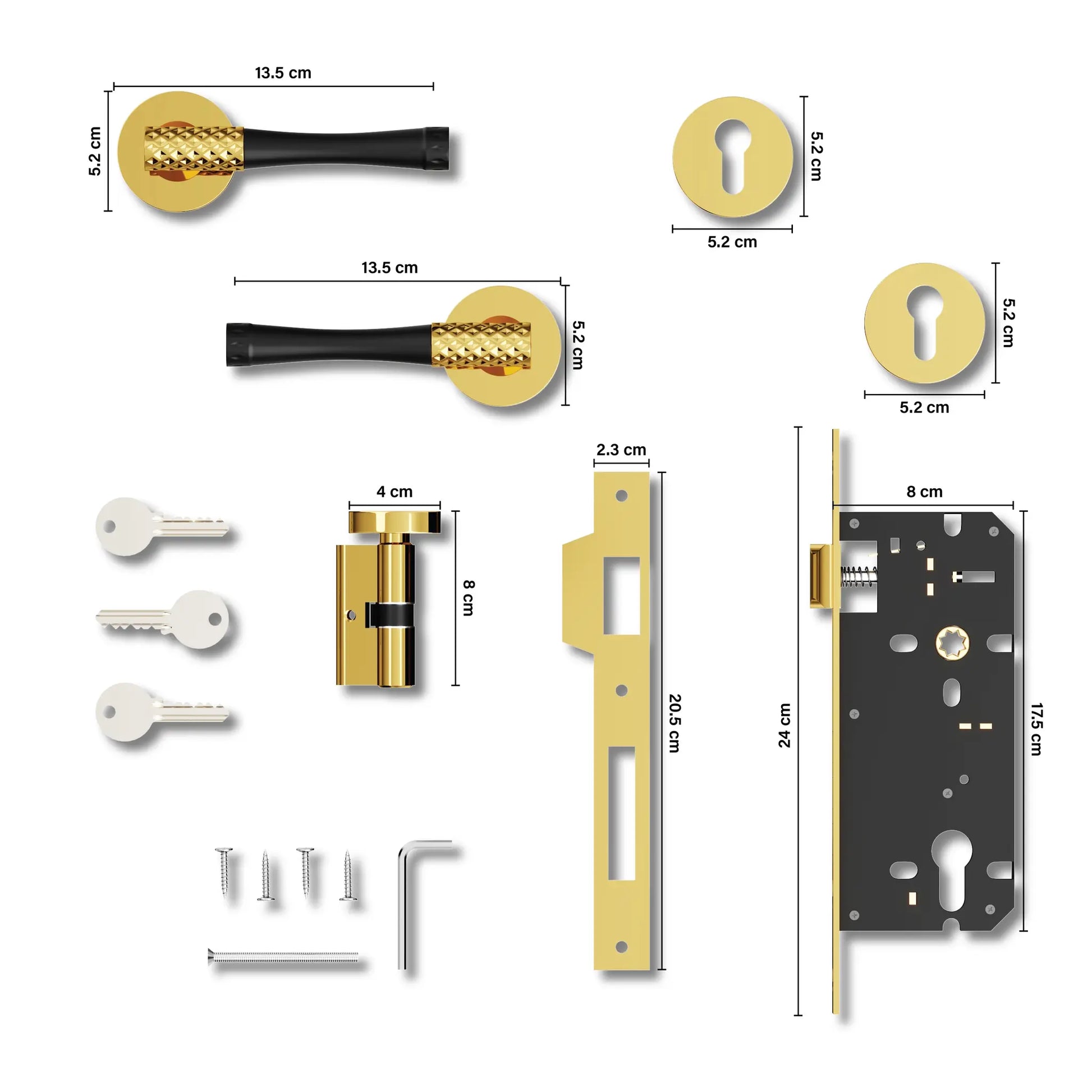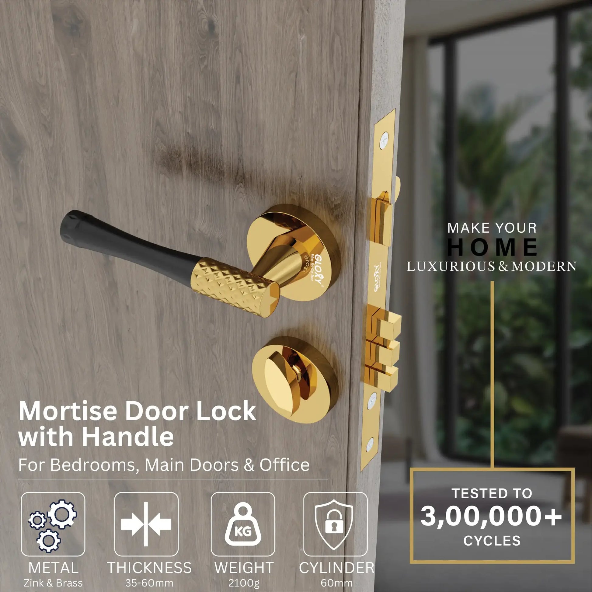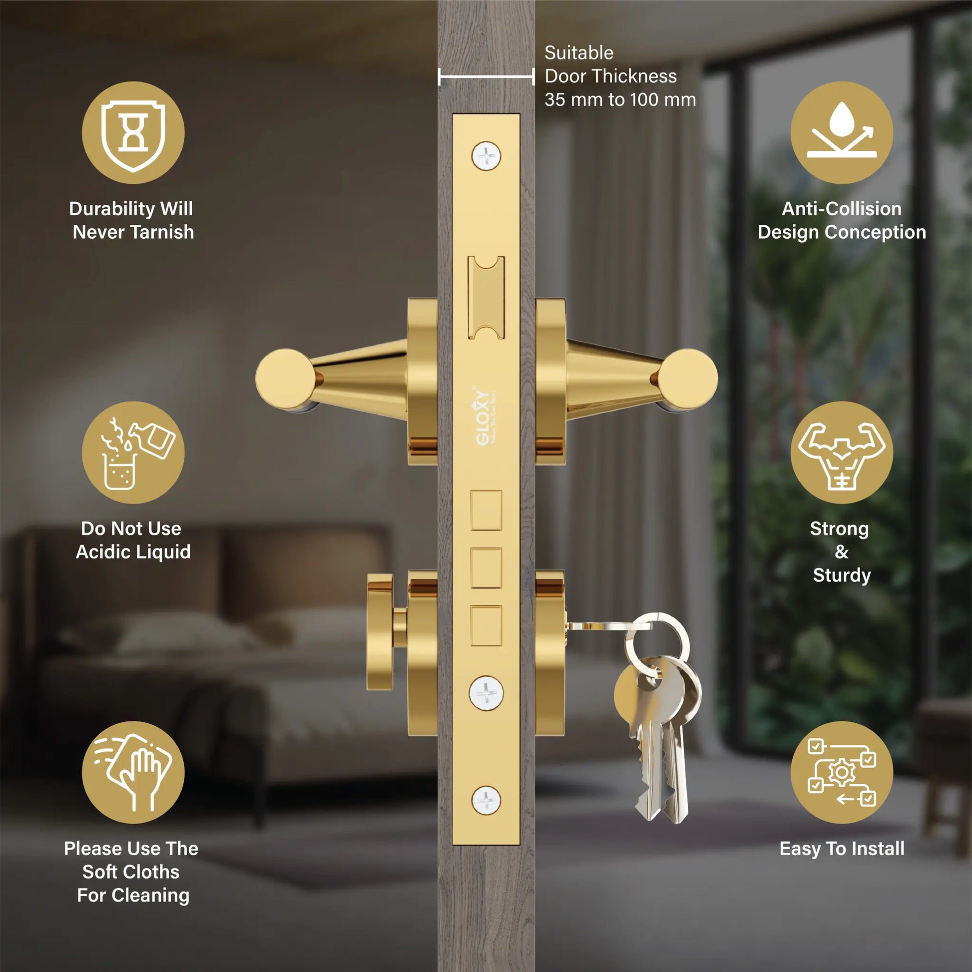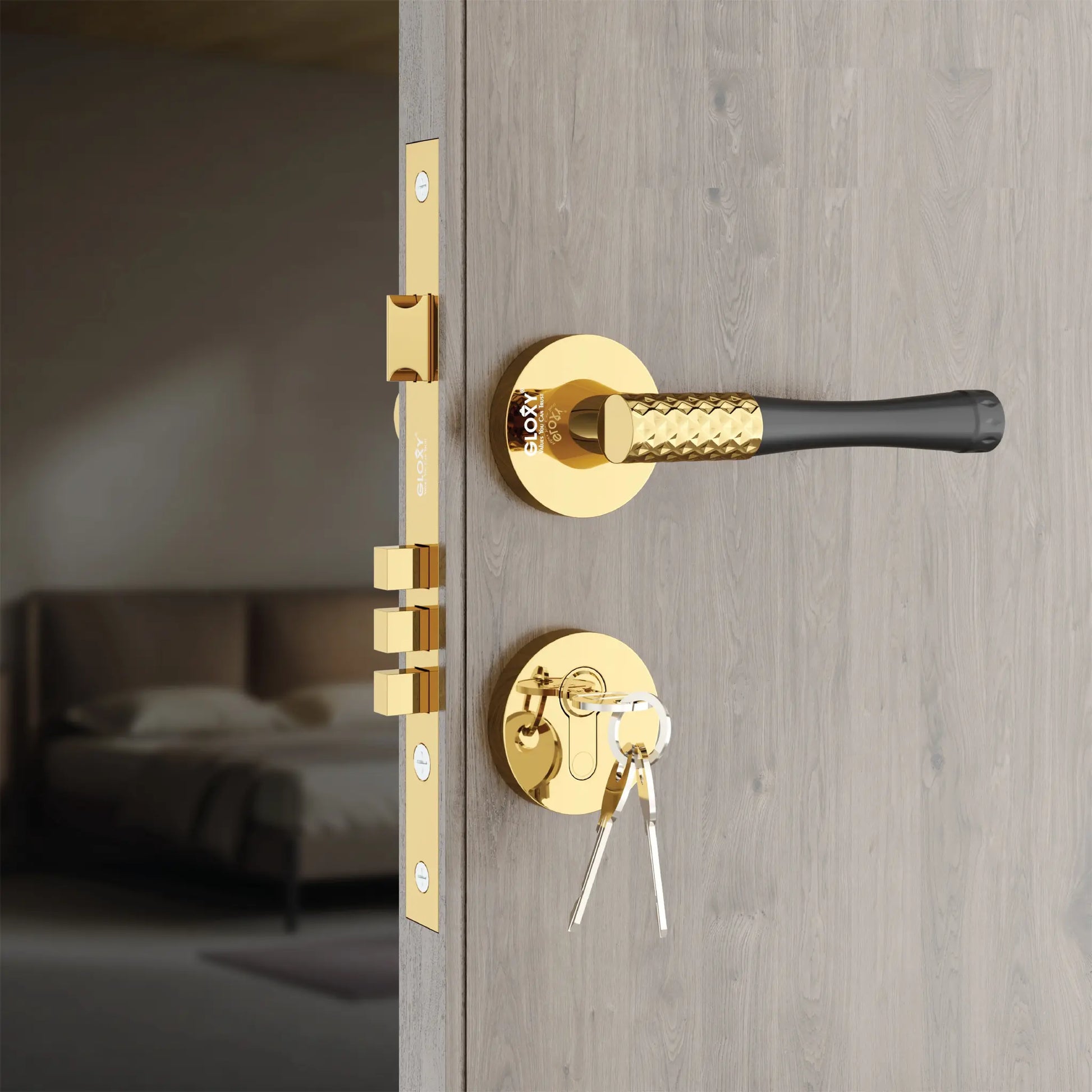 Gloxy Dexon Series Gold Finish Mortise Main Door Key Lock With Handle