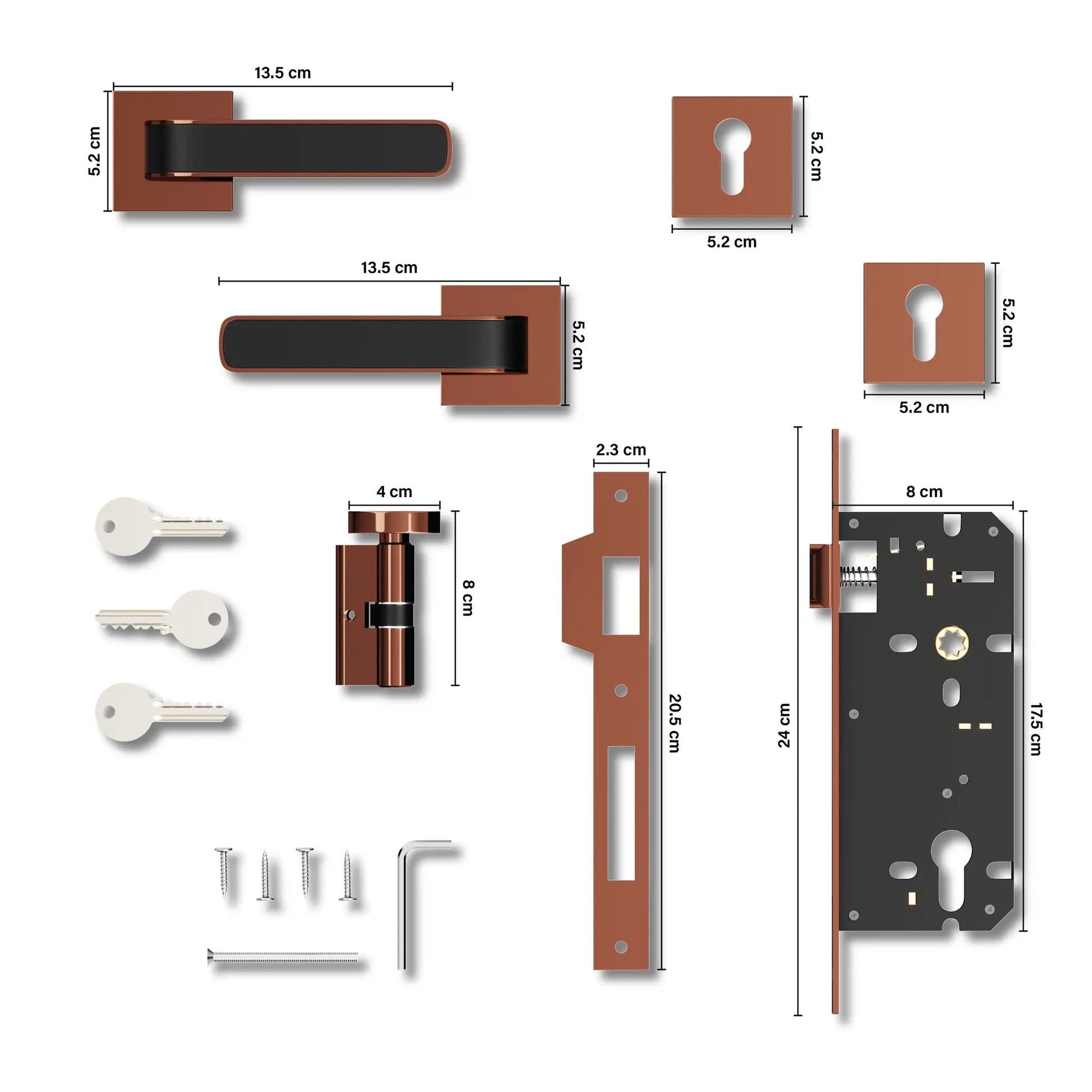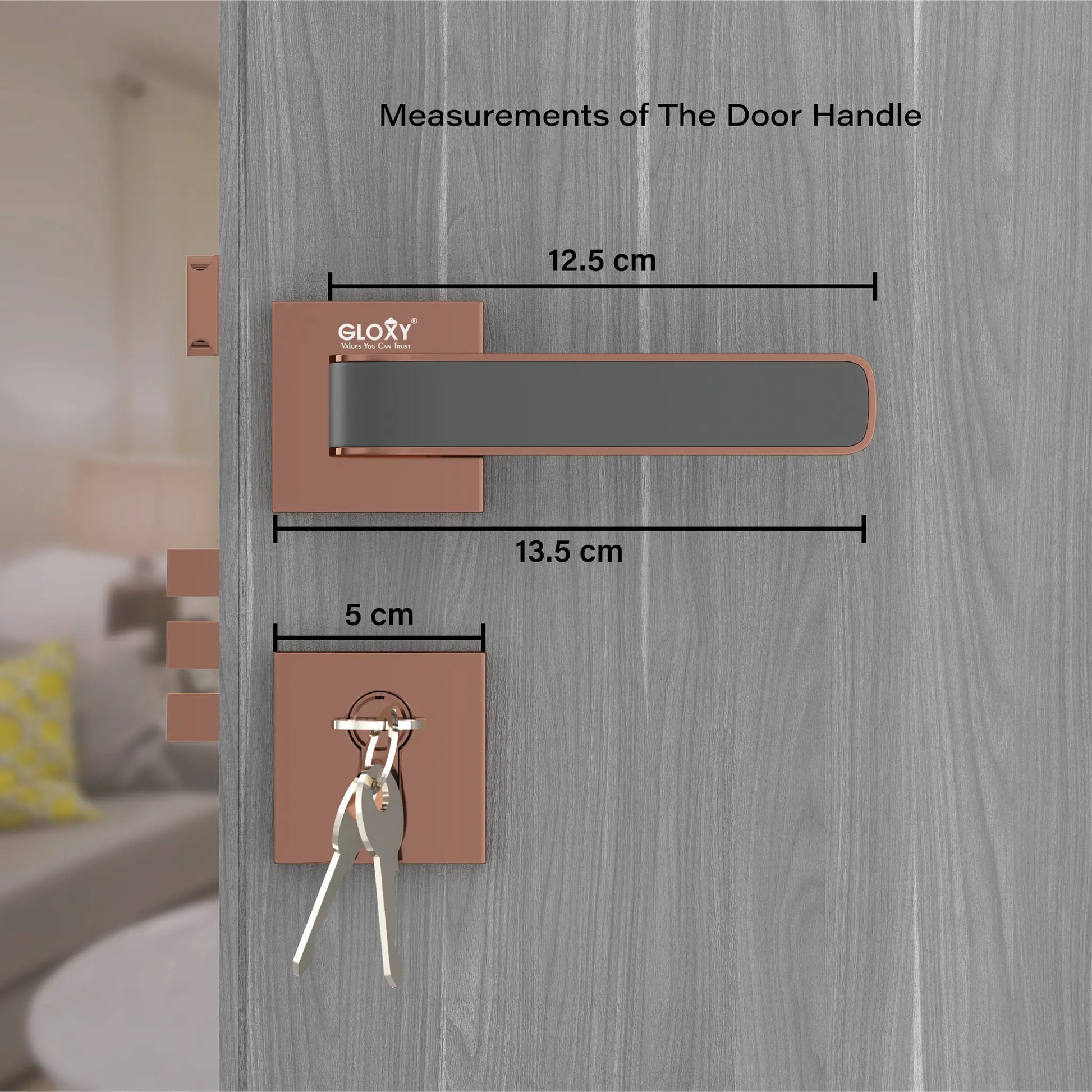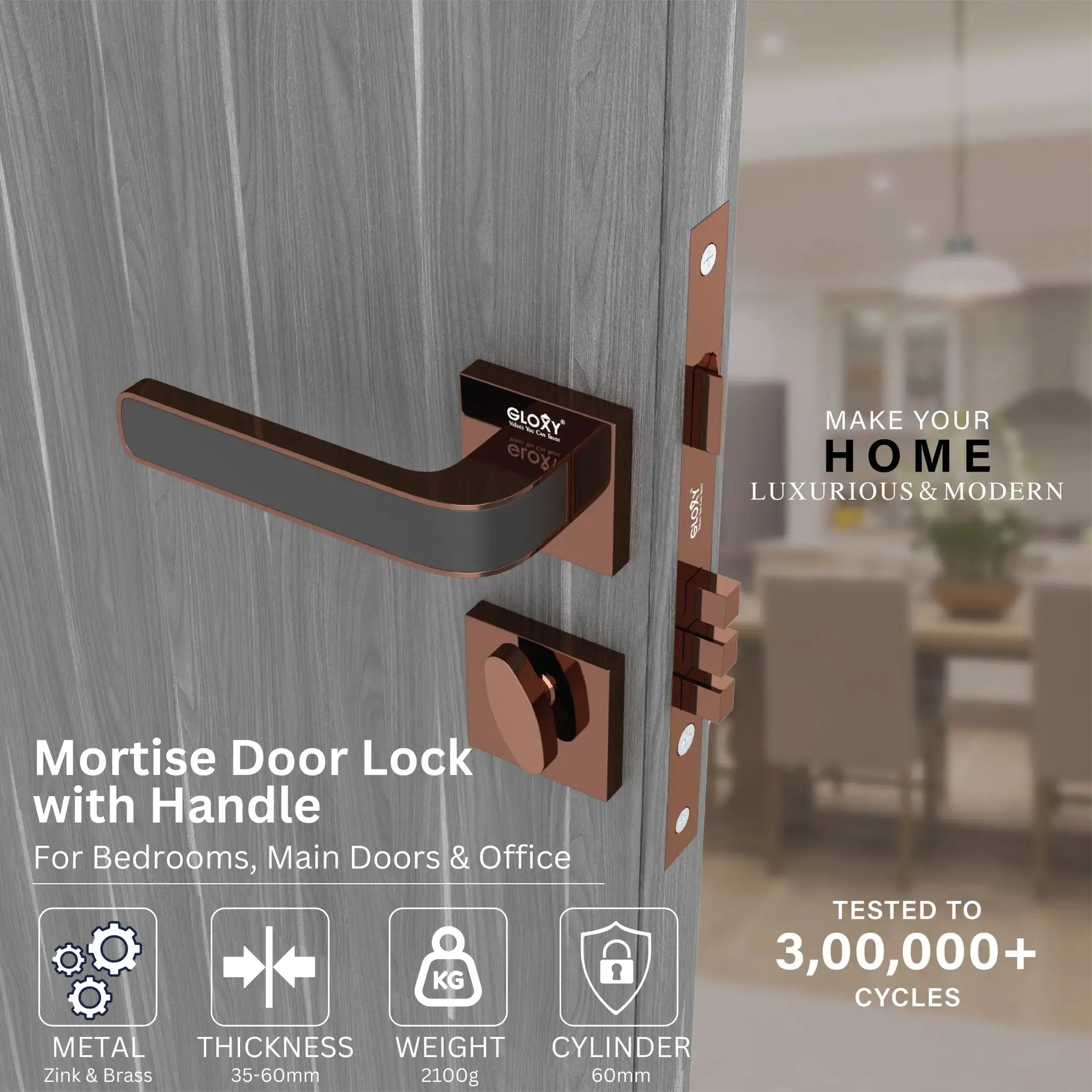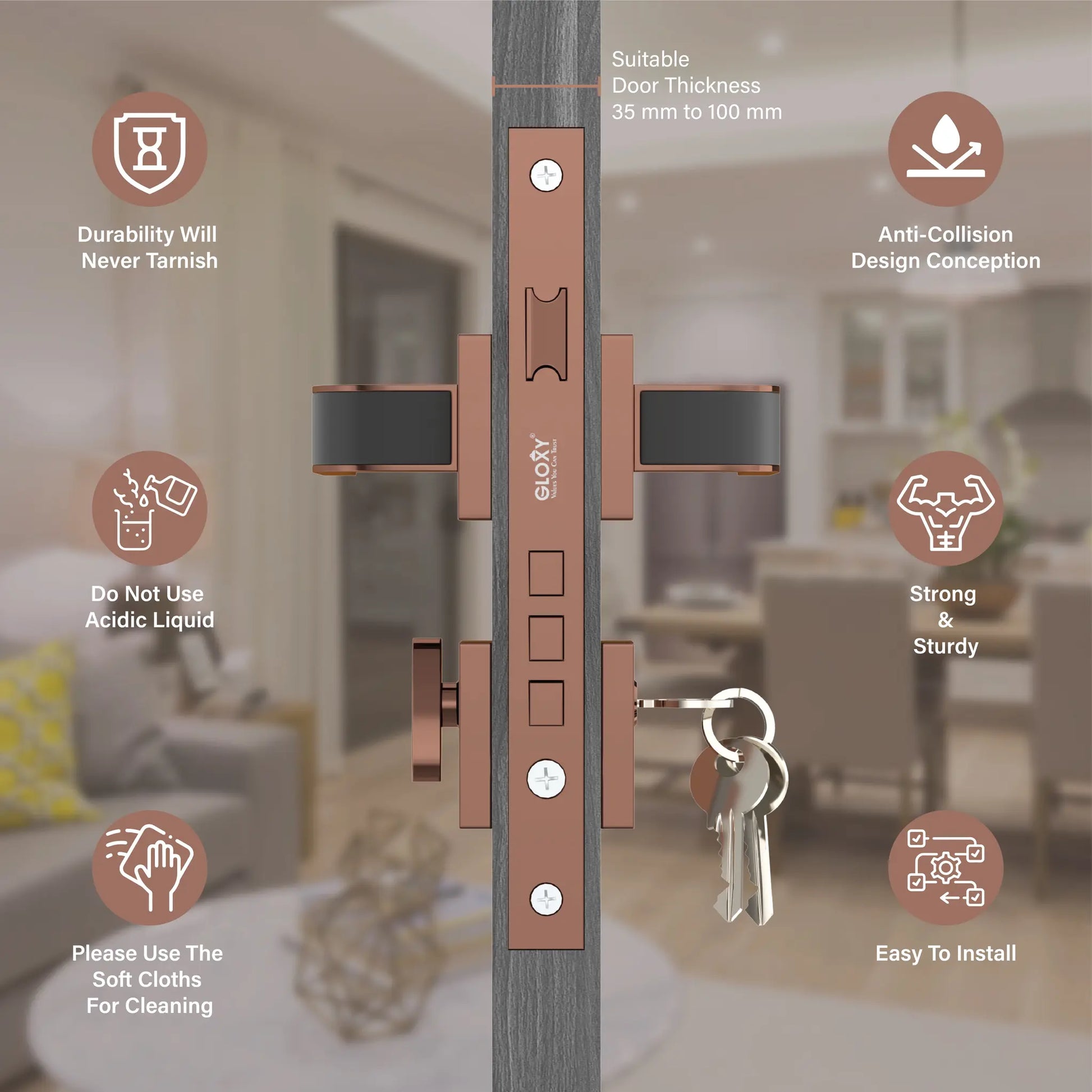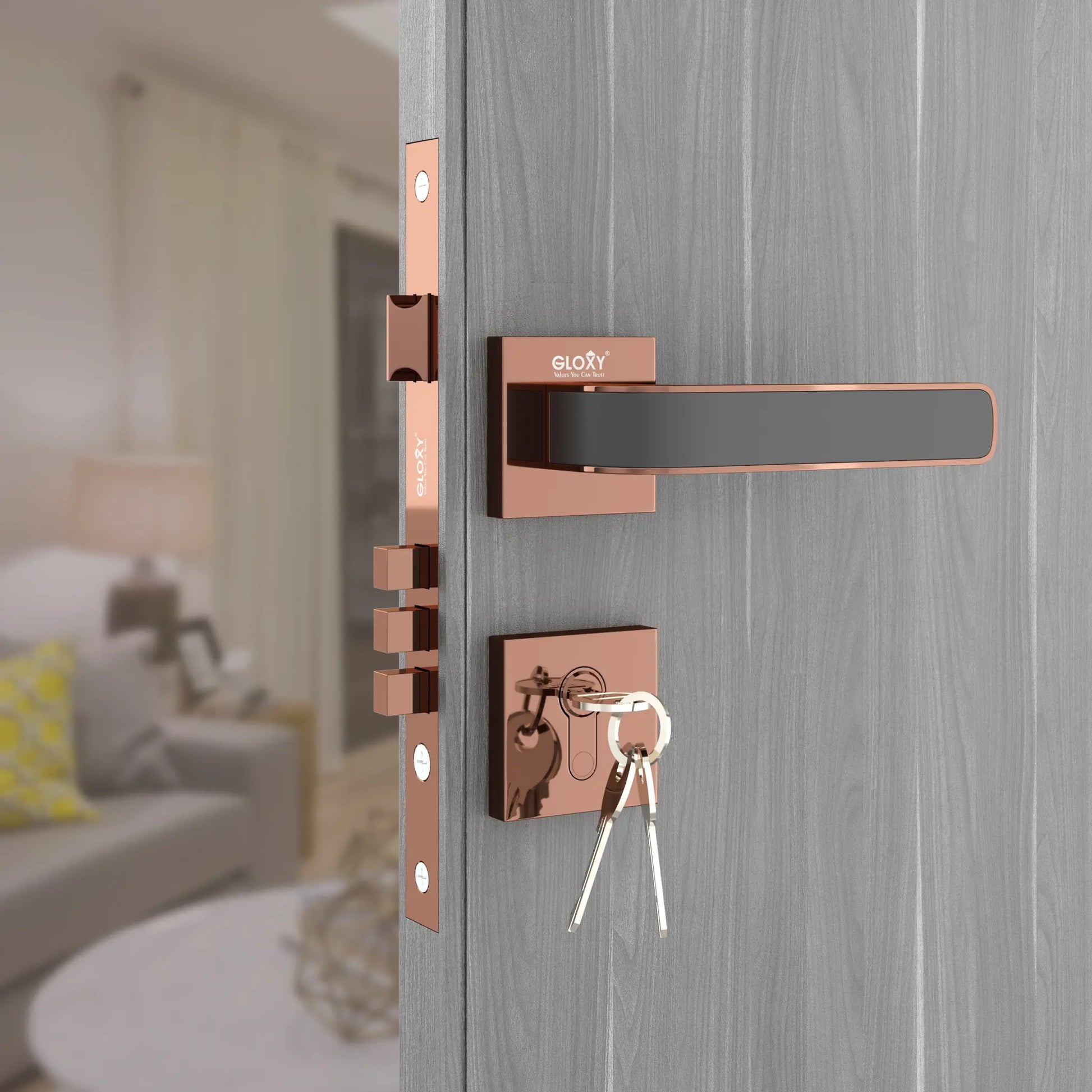 Gloxy Dorik Series Rose Gold Finish Mortise Main Door Key Lock With Handle
