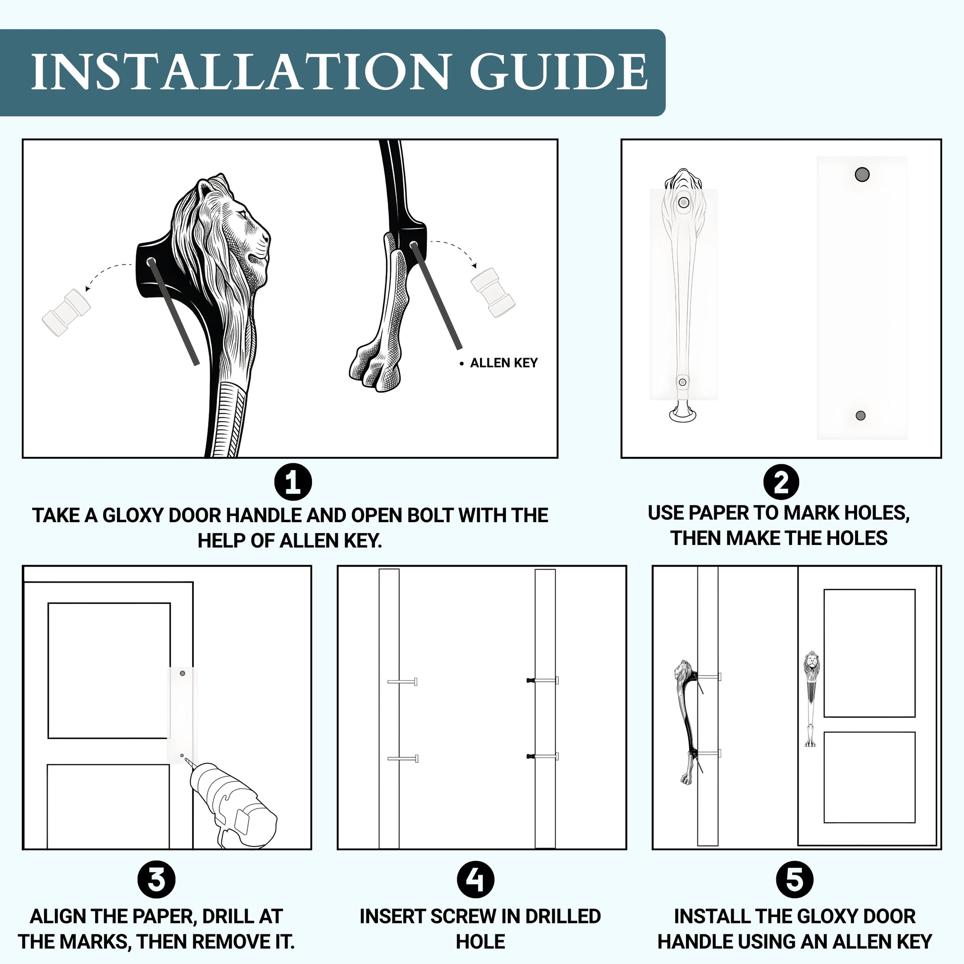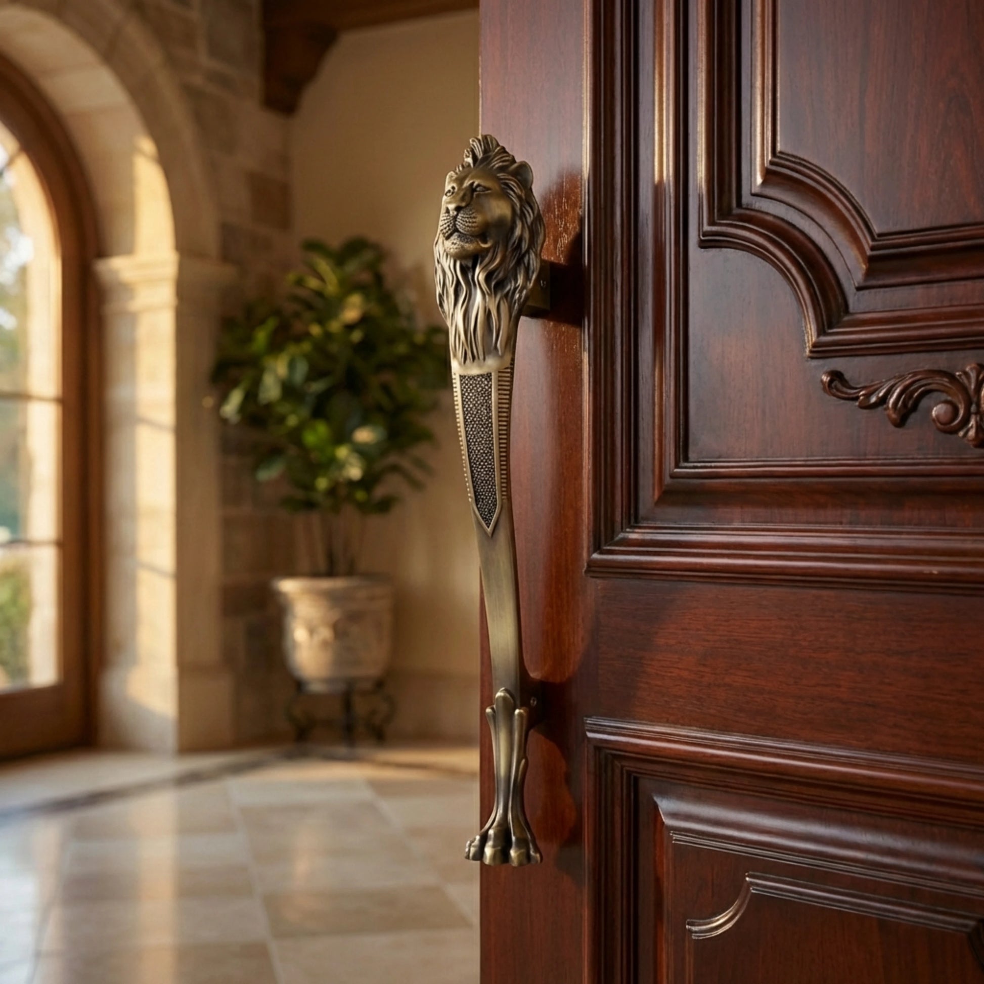 Gloxy Lion Shape Aluminium Antique Door Hardware 15 Inch -Antique Black