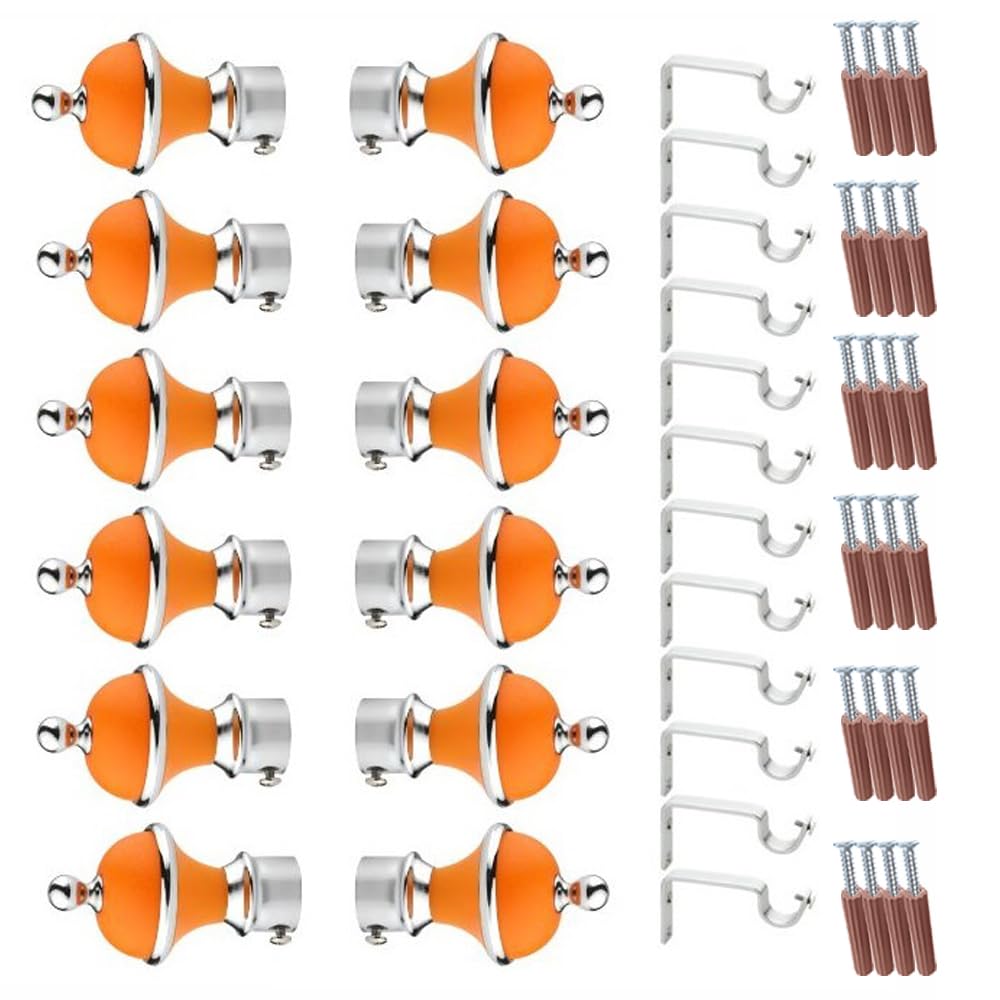 GLOXY Manjira Shape Stainless Steel & ABS Curtain Bracket Parda Holder with Support 1 Inch Rod Pocket Finials Designer Door and Window Rod Support Fittings, Curtain Rod Holder (Copy)