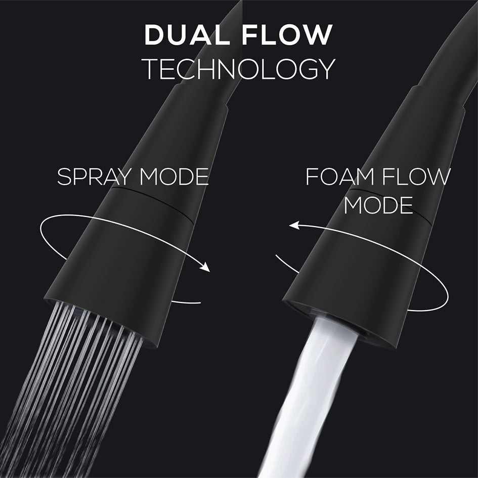 Gloxy Riva Series Dual Flow Brass Wall Mount 360° Flexible Swivel Faucet-Black Finish