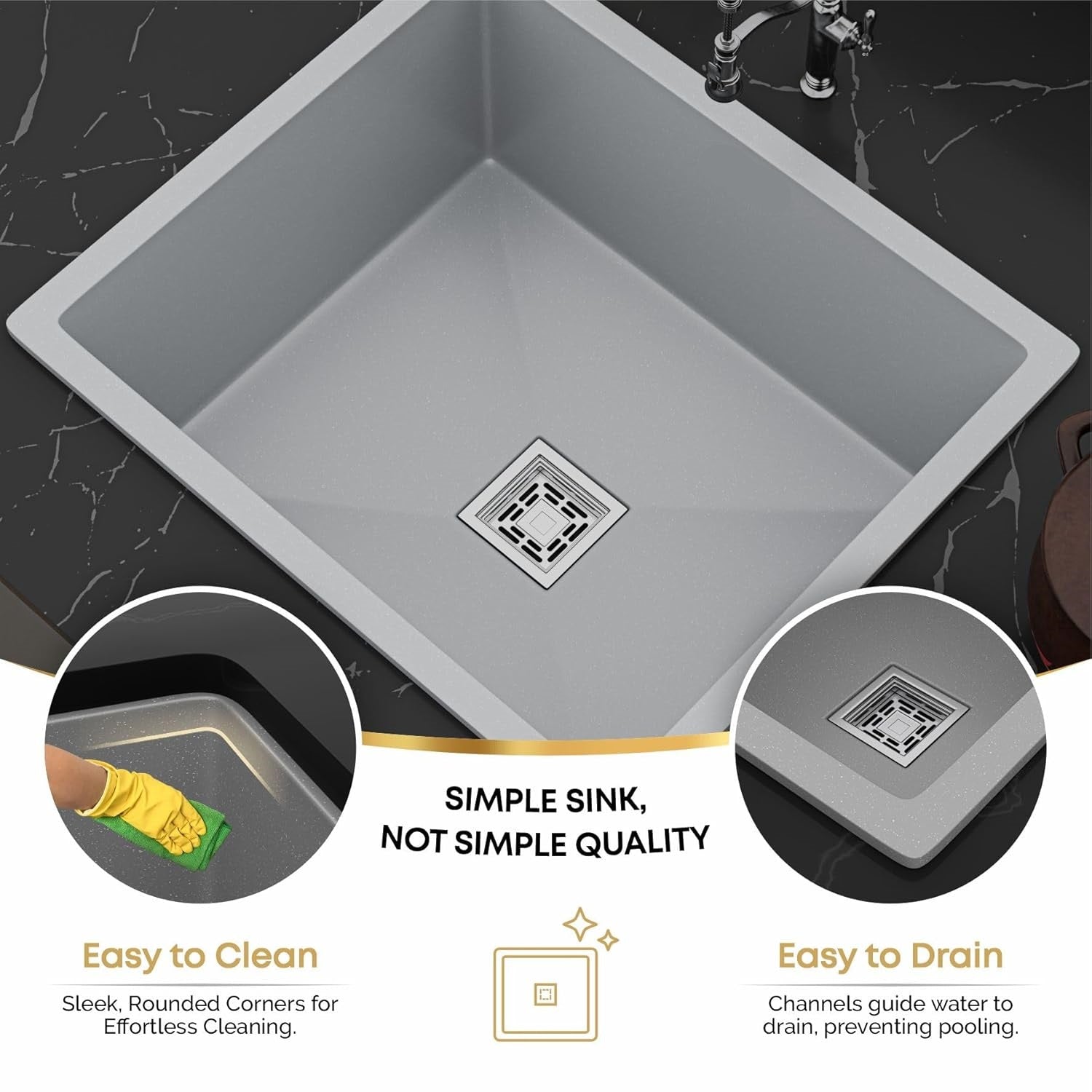 Gloxy Stainless Steel Handmade Exclusive Single Bowl Kitchen Sink/Quartz Sink For Kitchen/Non-Fading With Uv Protection/Undermount/Topmount (Gray, 21x18)