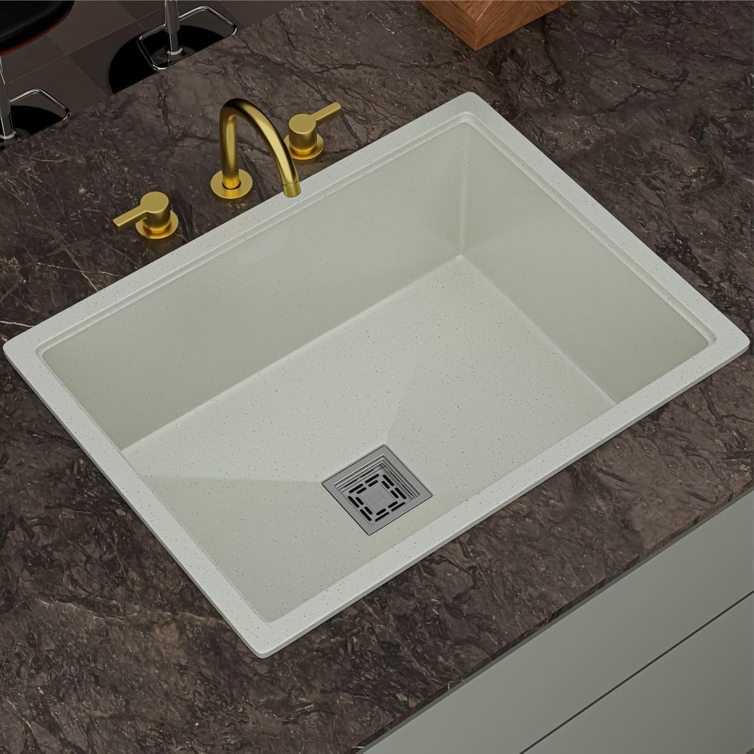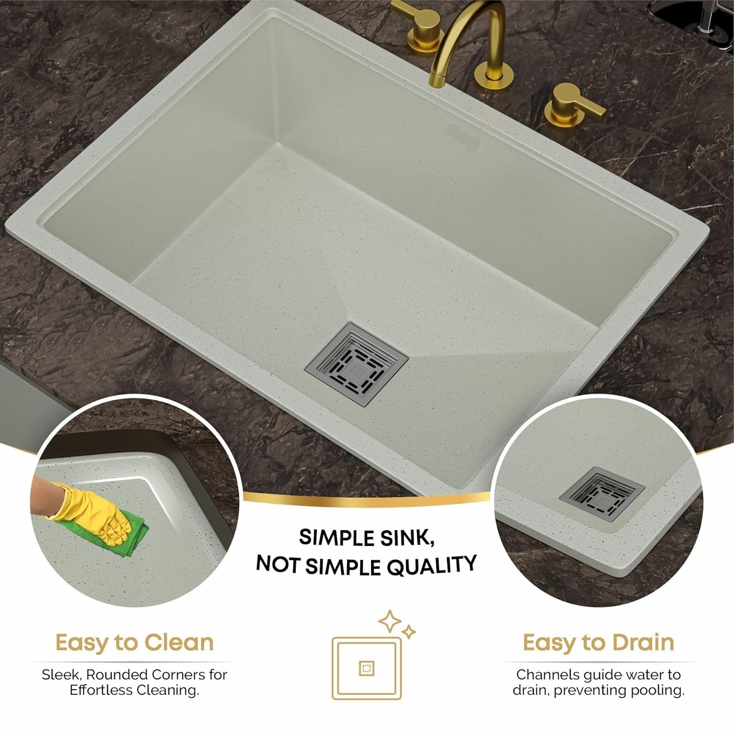 Gloxy Stainless Steel Handmade Exclusive Single Bowl Kitchen Sink/Quartz Sink For Kitchen/Non-Fading With Uv Protection/Undermount/Topmount (White, 24x18)