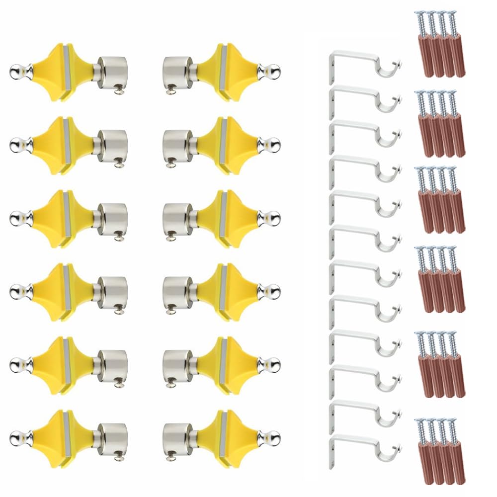 GLOXY Hexa Shape Stainless Steel & ABS Curtain Bracket Parda Holder with Support 1 Inch Rod Pocket Finials Designer Door and Window Rod Support Fittings, Curtain Rod Holder