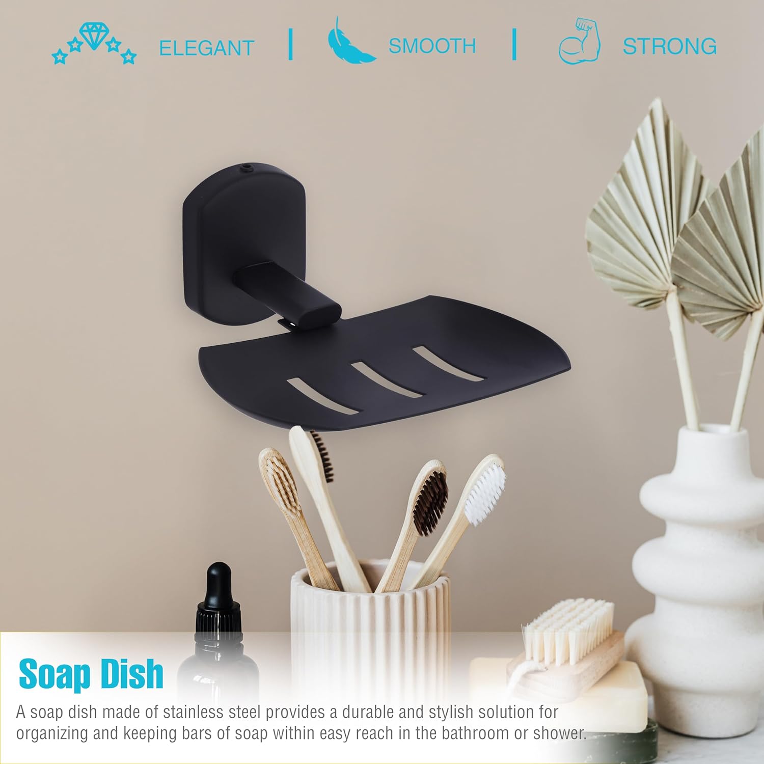 Gloxy Squar Shape Stainless Steel 202 Grade Black Matt Finish Single Soap Holder