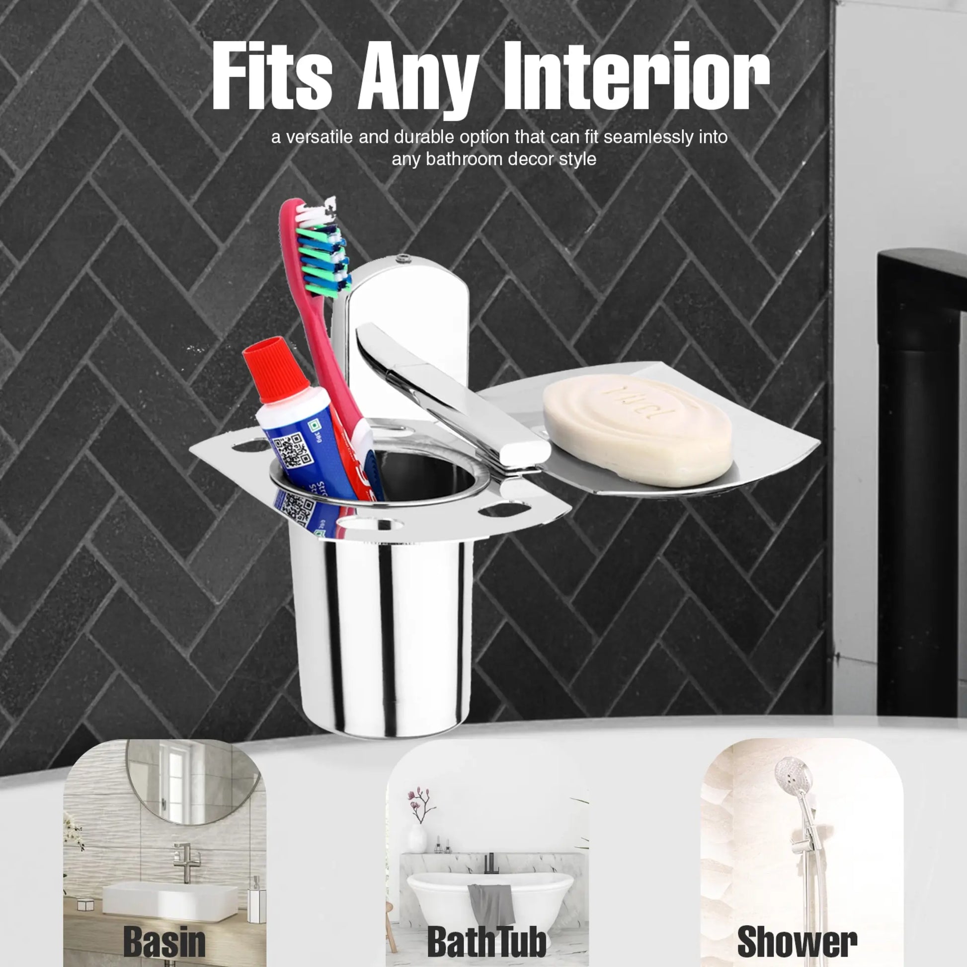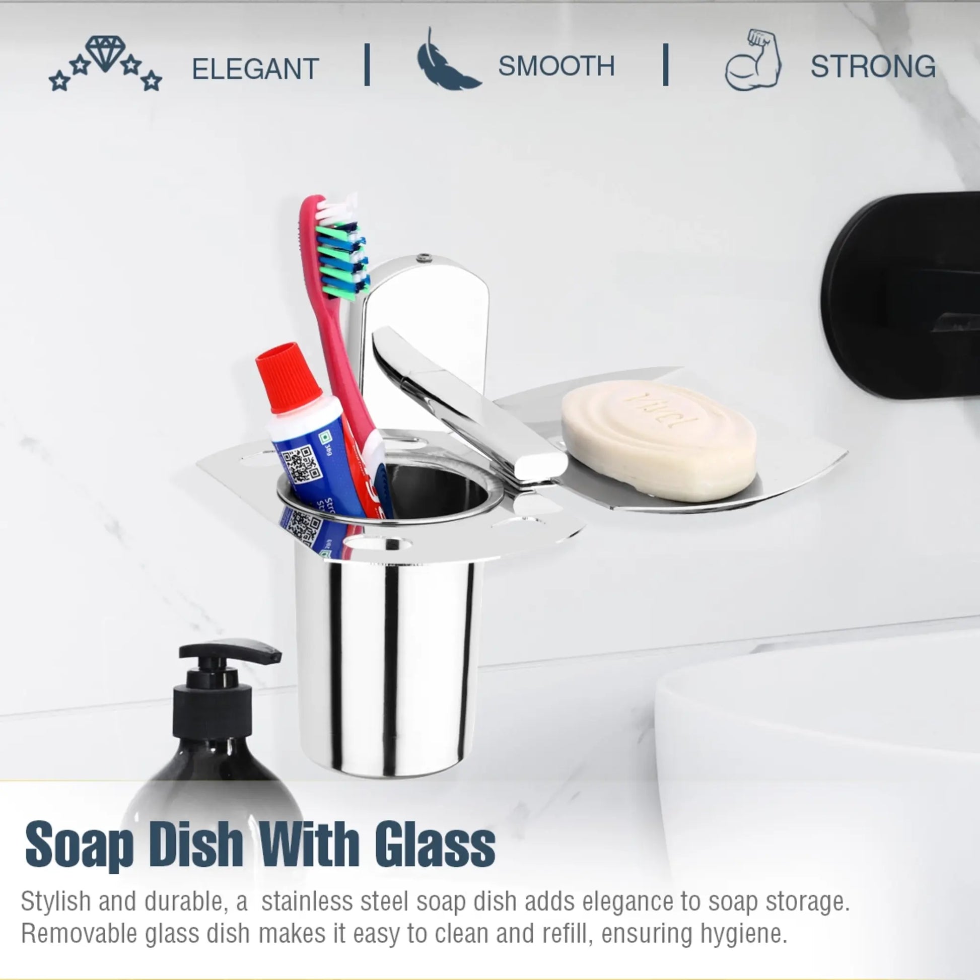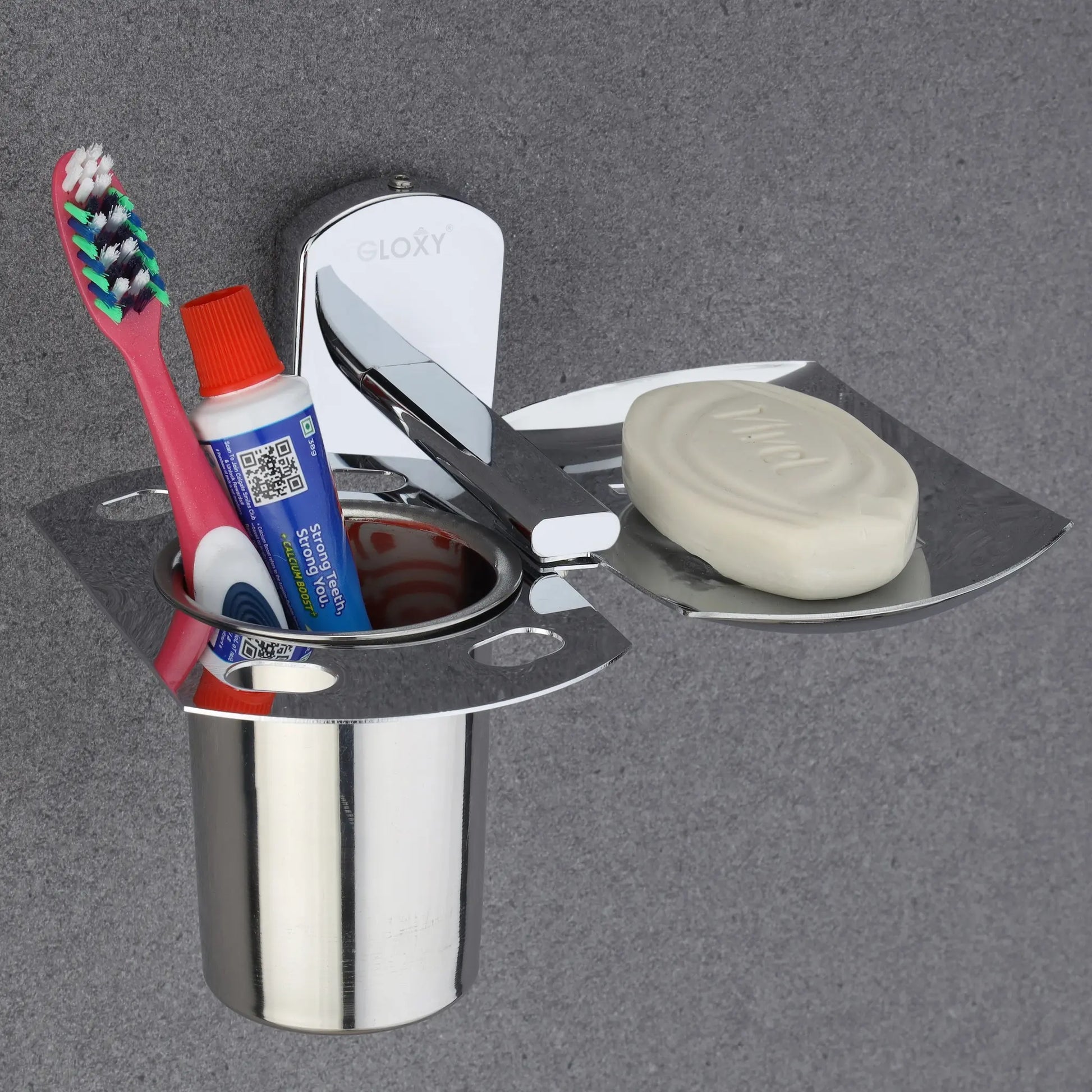 Gloxy Rectangular Shape Stainless Steel 202 Grade Chrome Finish Single Soap Holder With Tumbler Holder