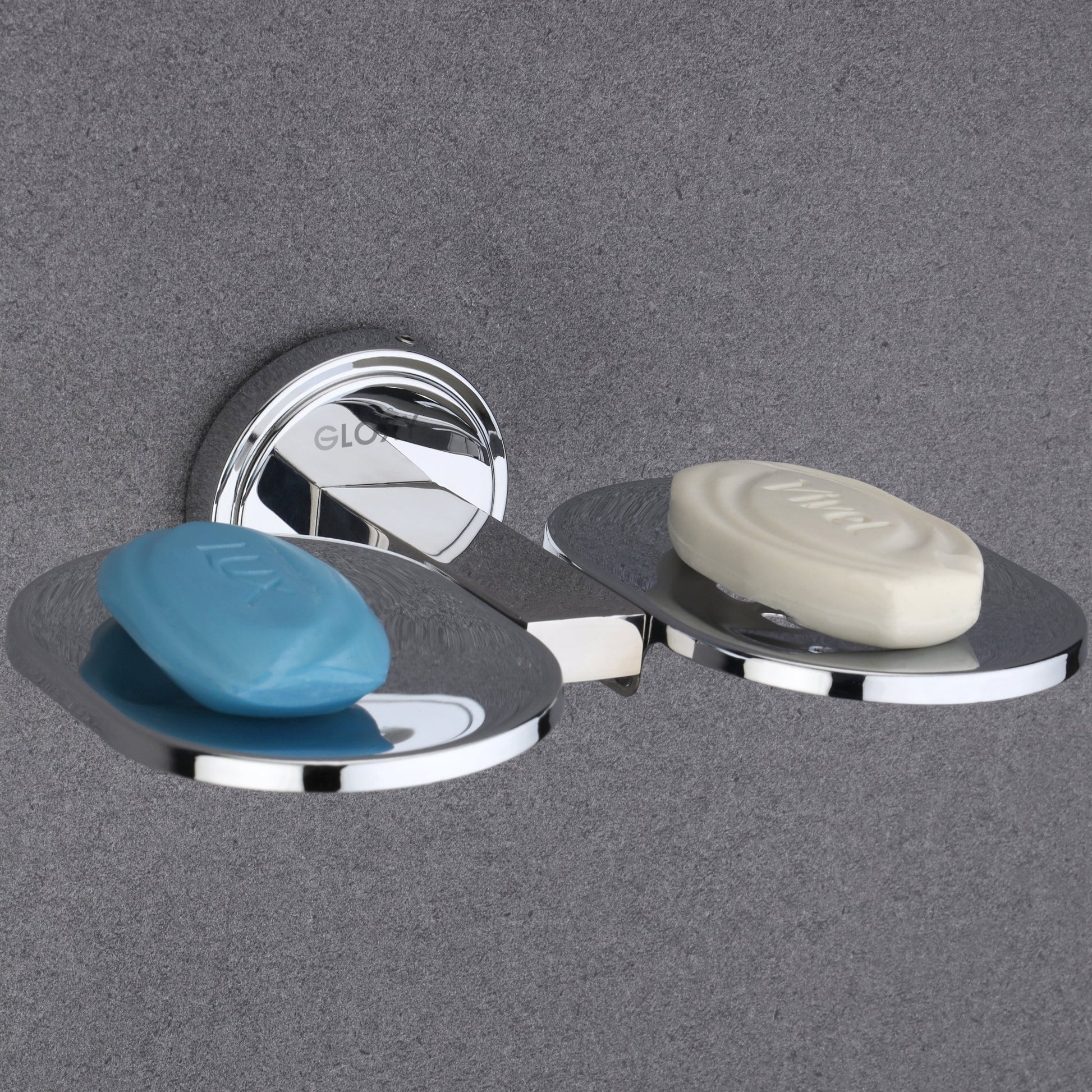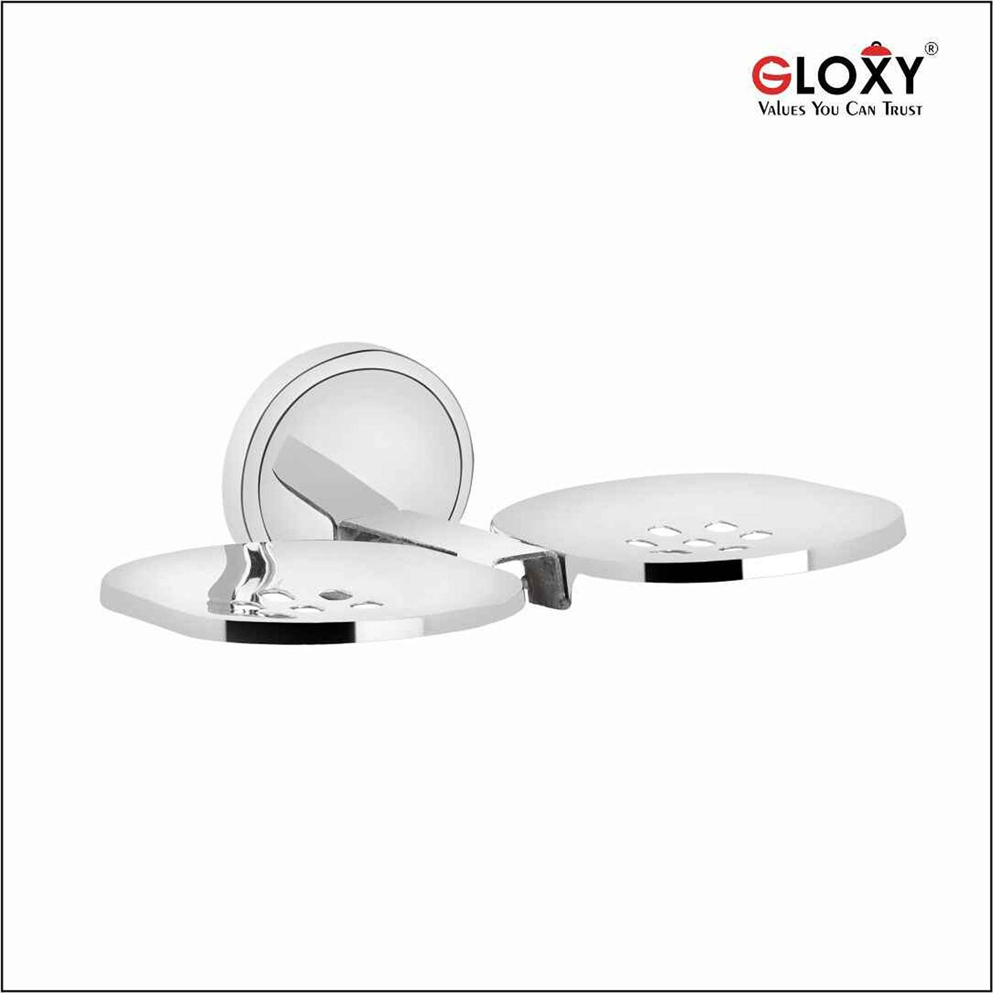 Gloxy Round Shape Stainless Steel 202 Grade Chrome Finish Double Soap Holder