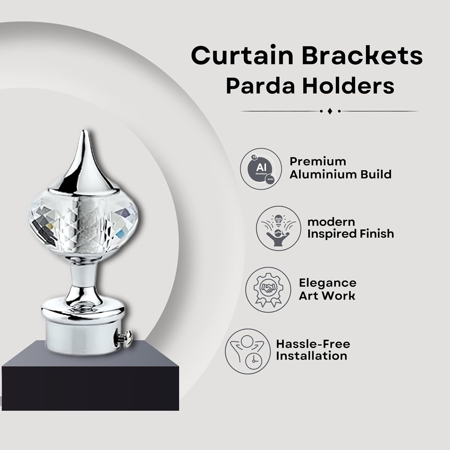 - Our curtain holder brackets are made from premium quality Stainless Steel & Aluminium and go through many processes to make them superior and ancient.