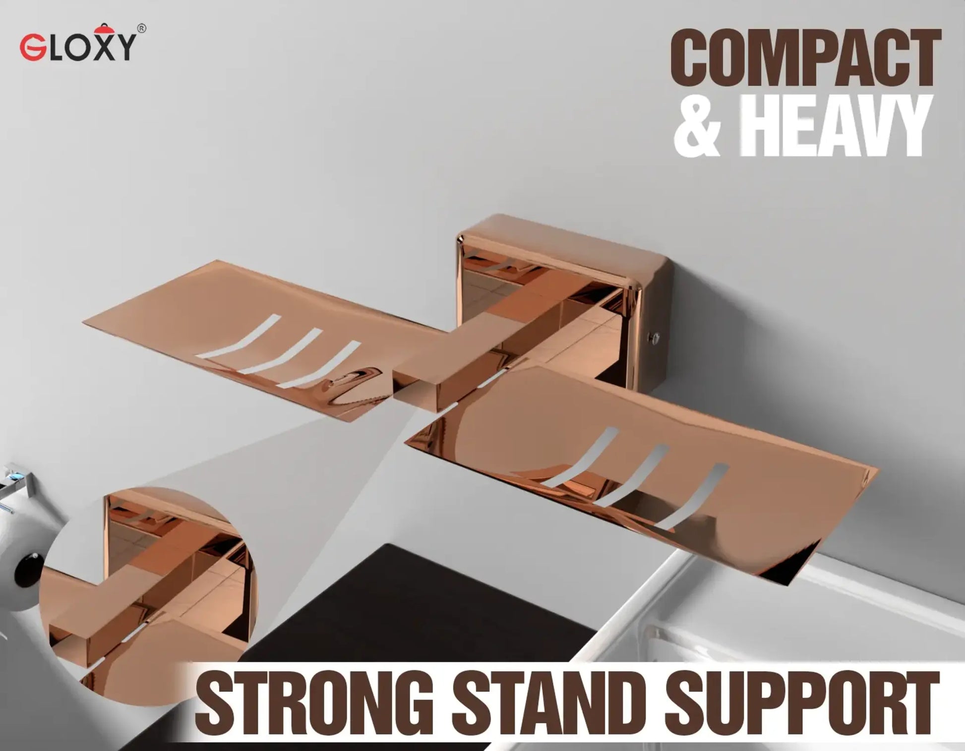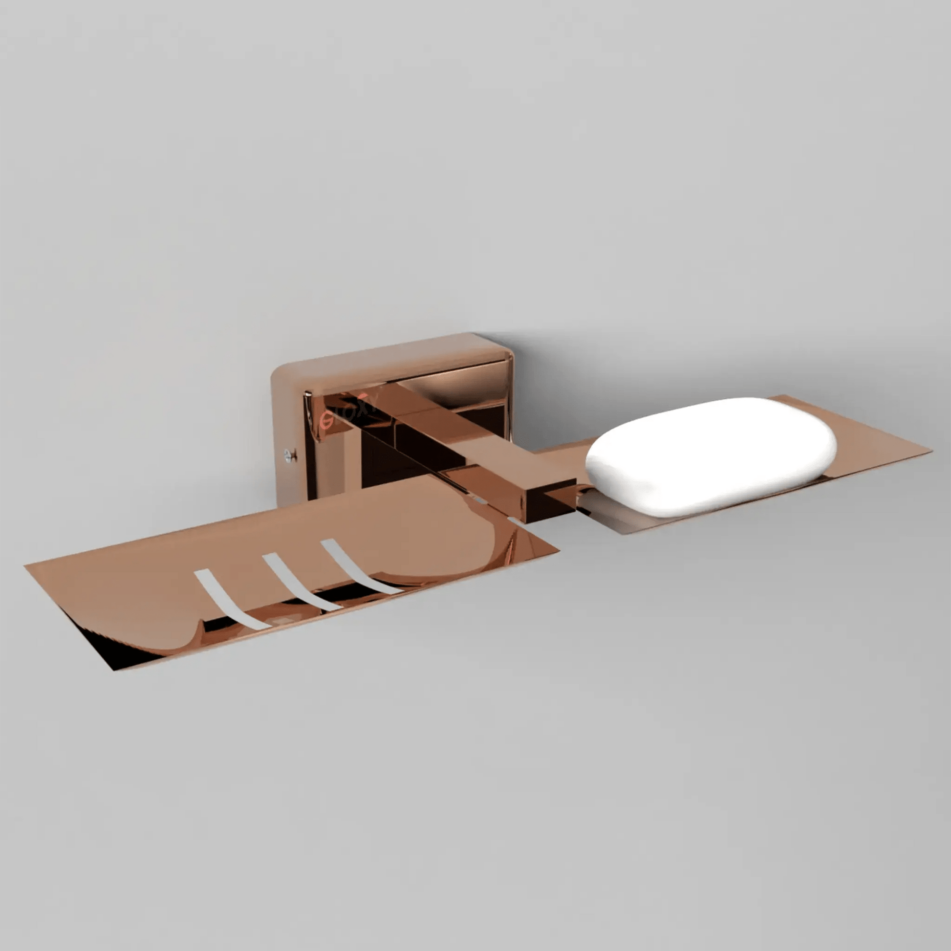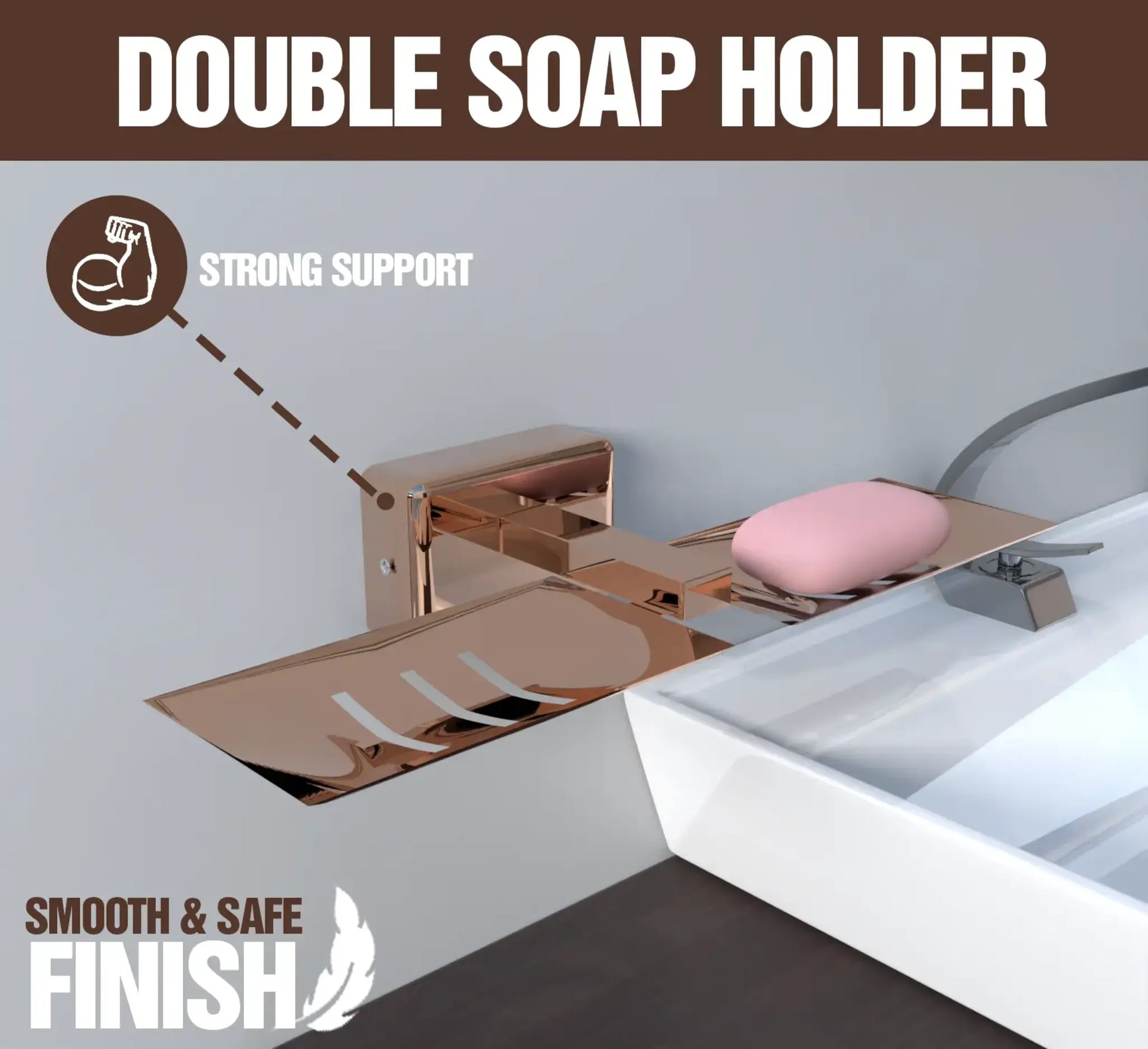 Gloxy Square Shape Stainless Steel 304 Grade Copper Finish Double Soap Holder
