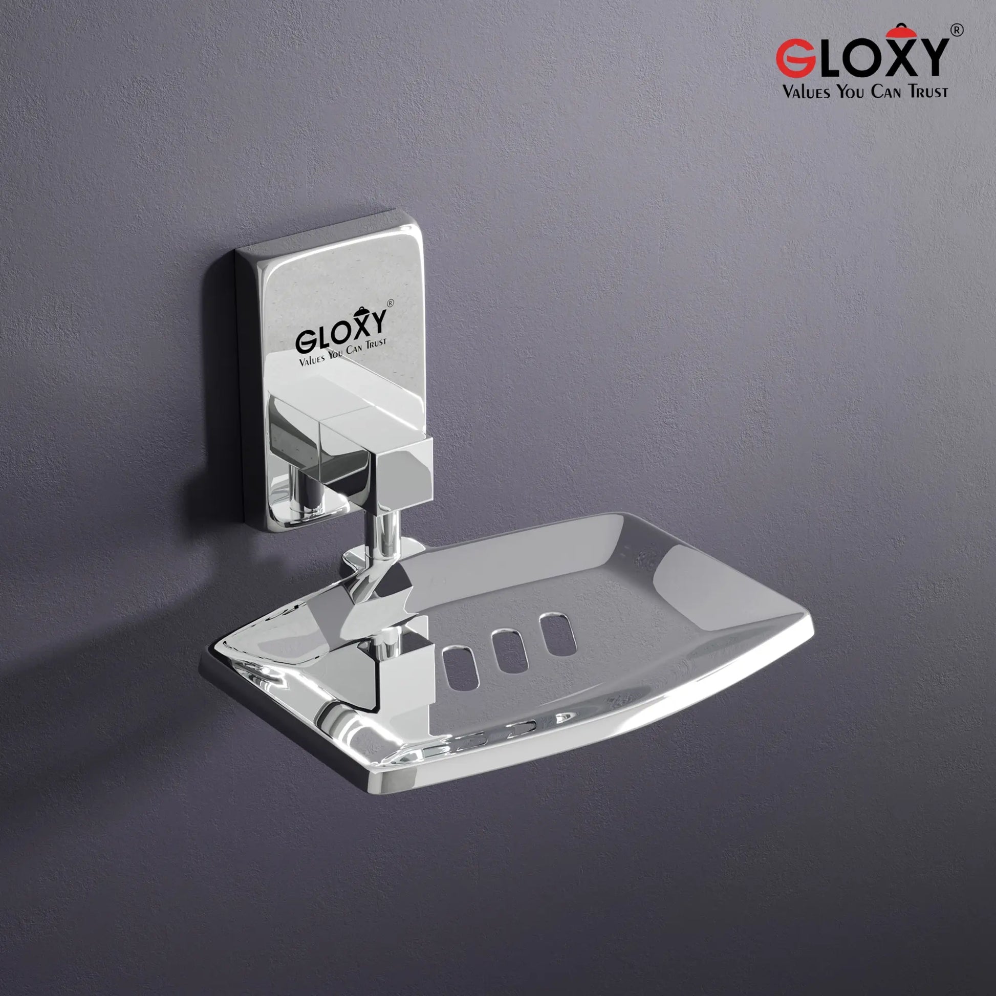 Gloxy Square Shape Stainless Steel 202 Grade Chrome Finish Single Soap Holder