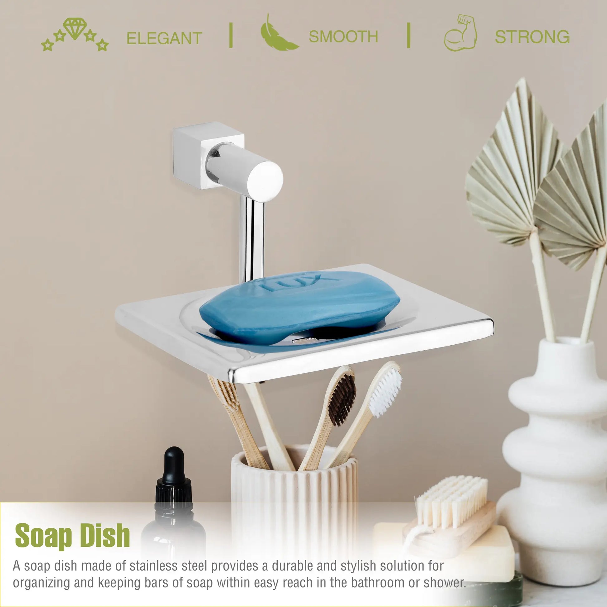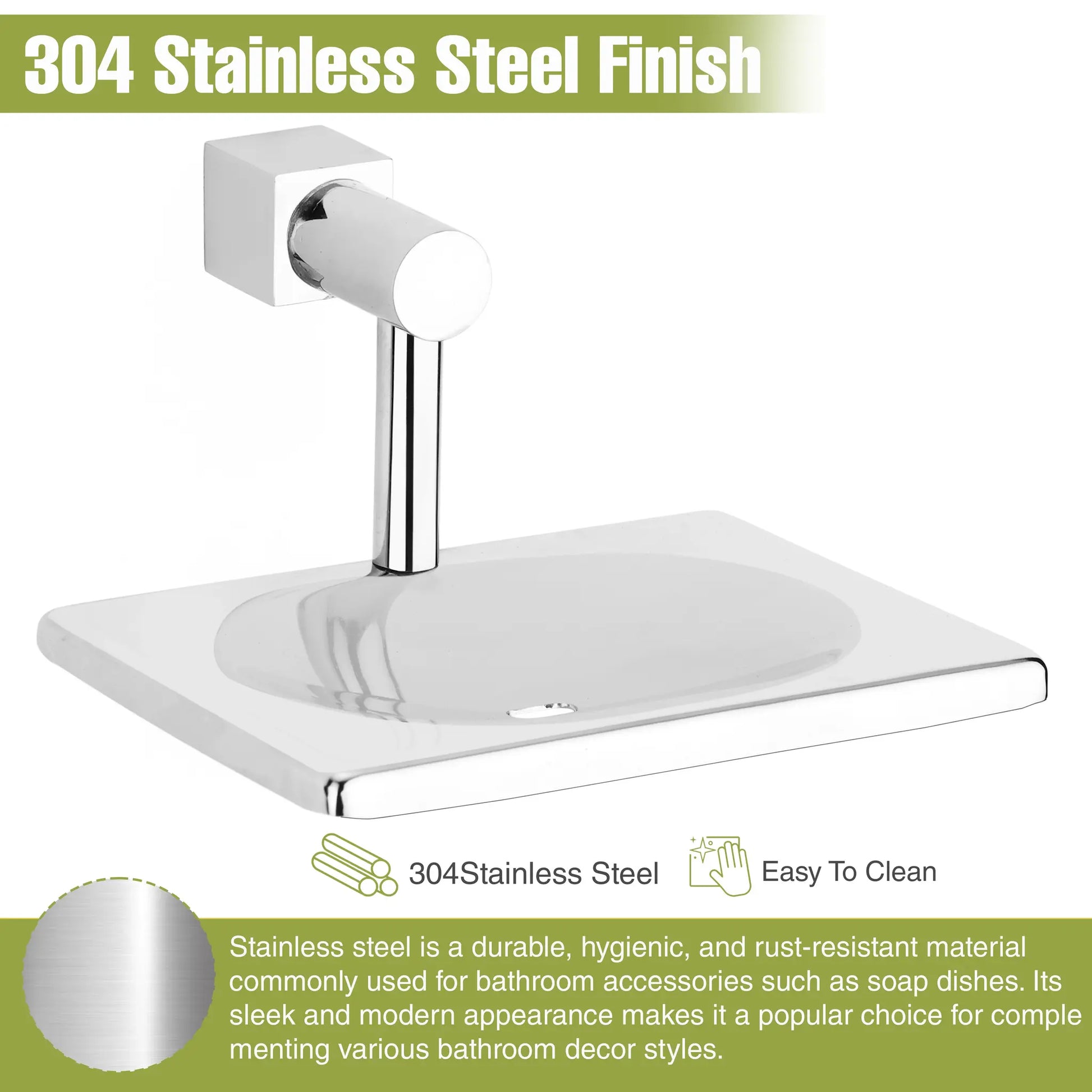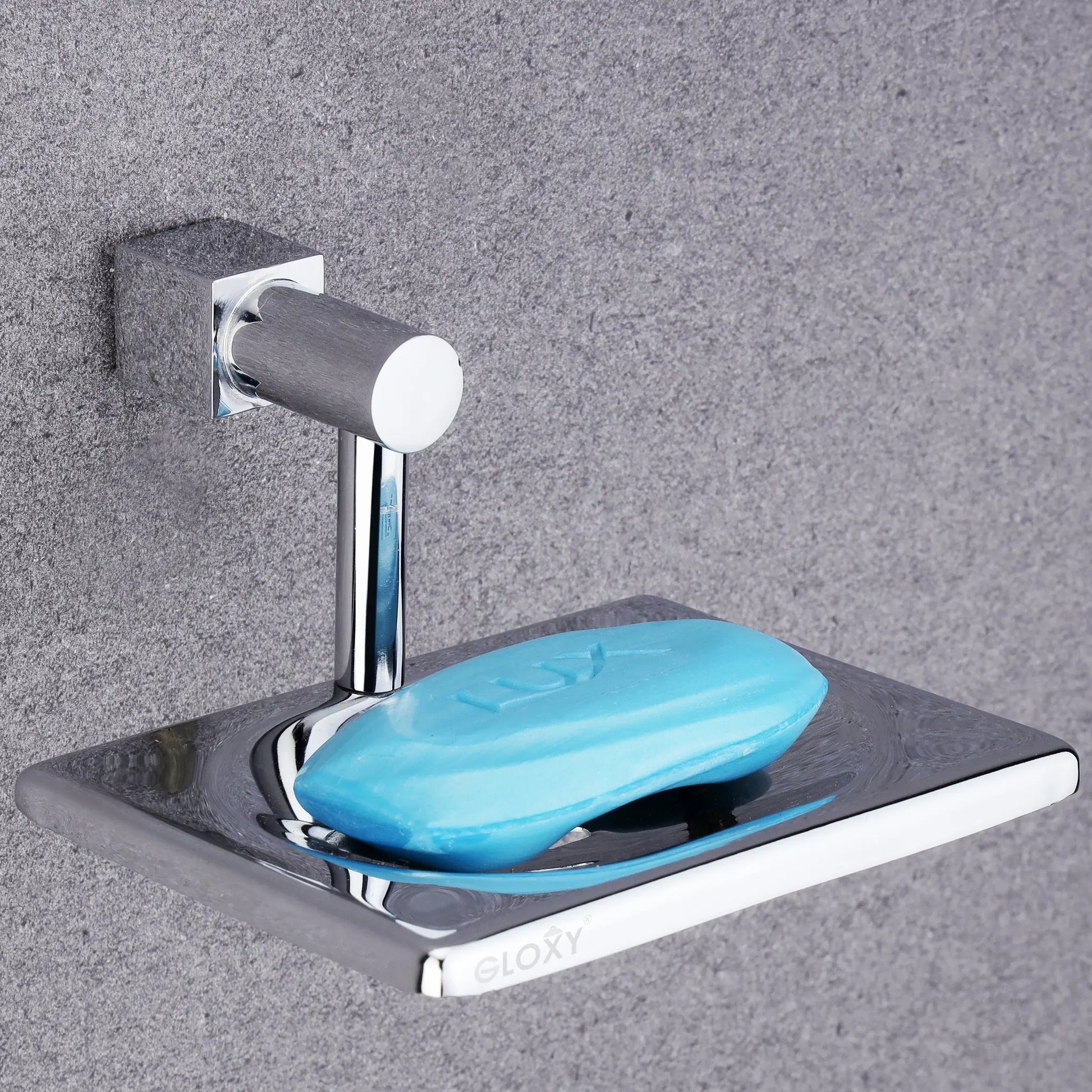 Gloxy Squar Shape Stainless Steel 304 Grade Chrome Finish Single Soap Holder