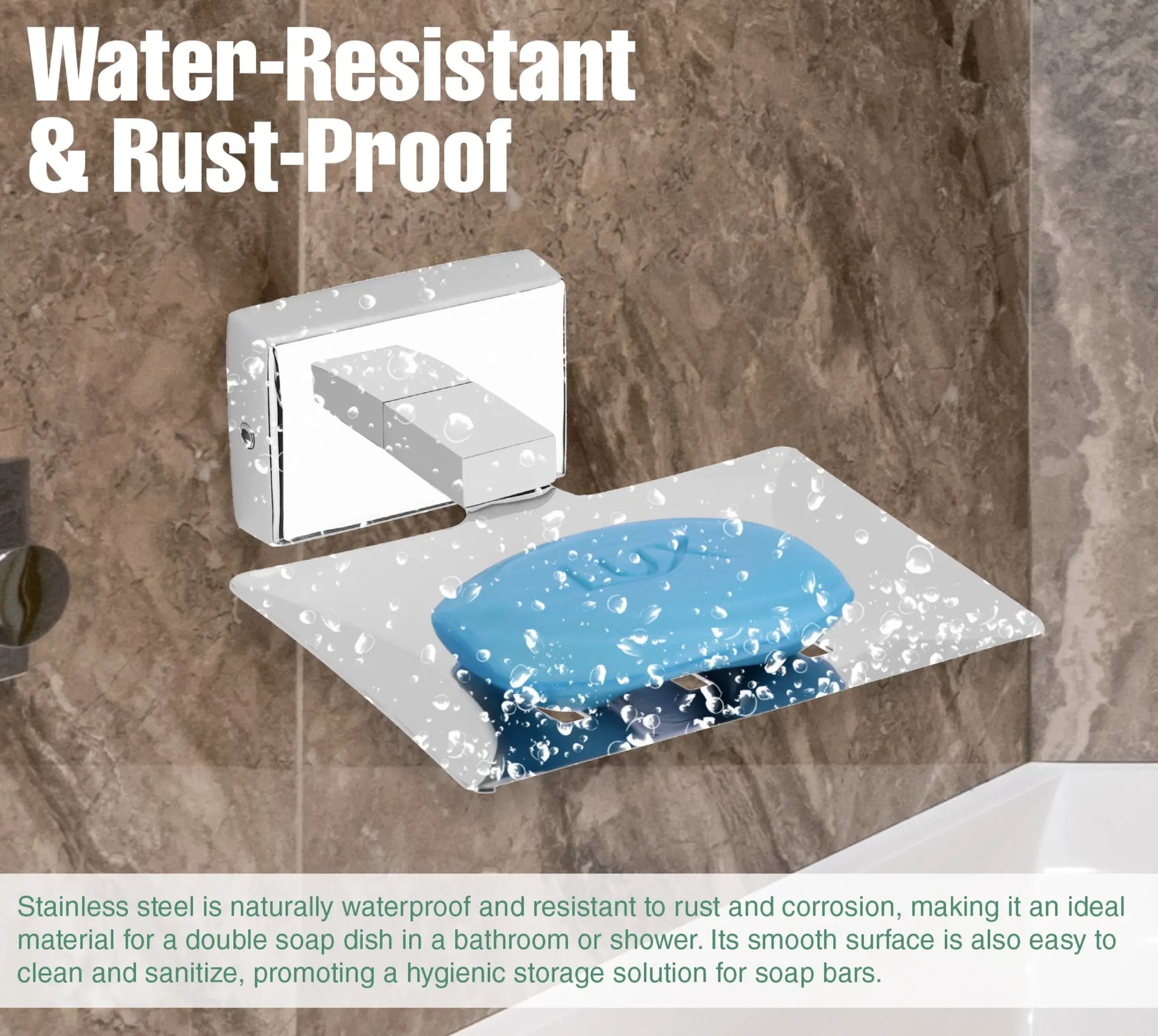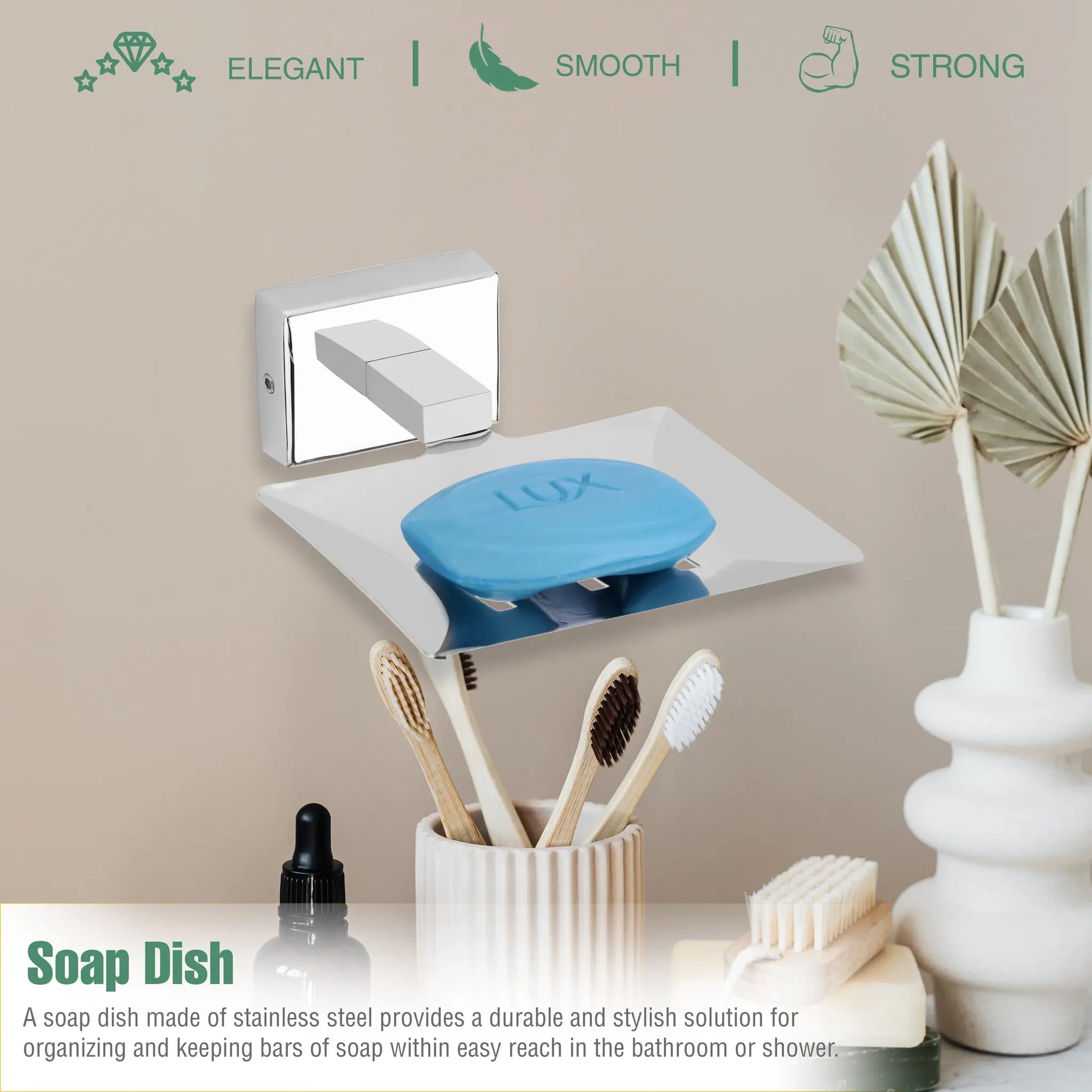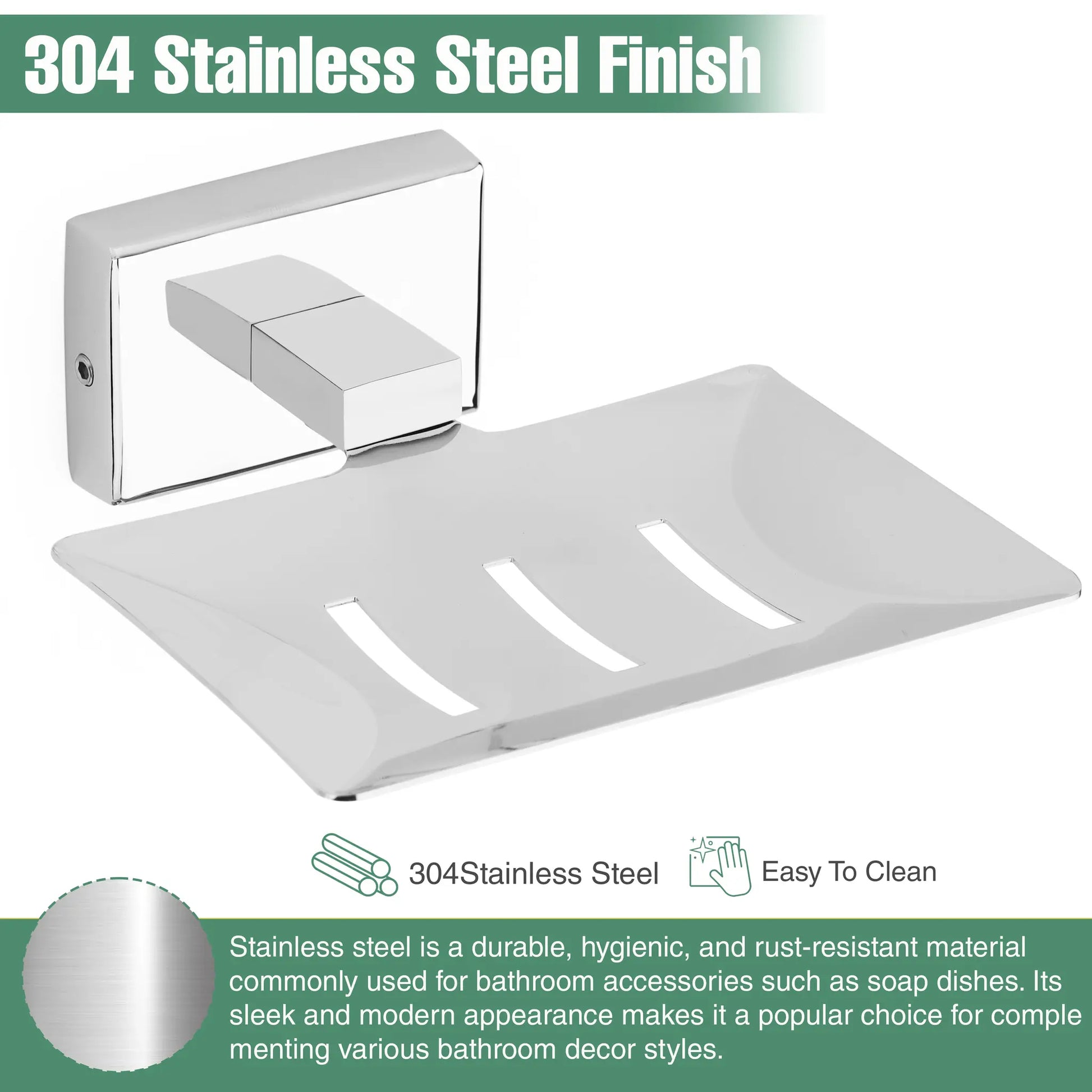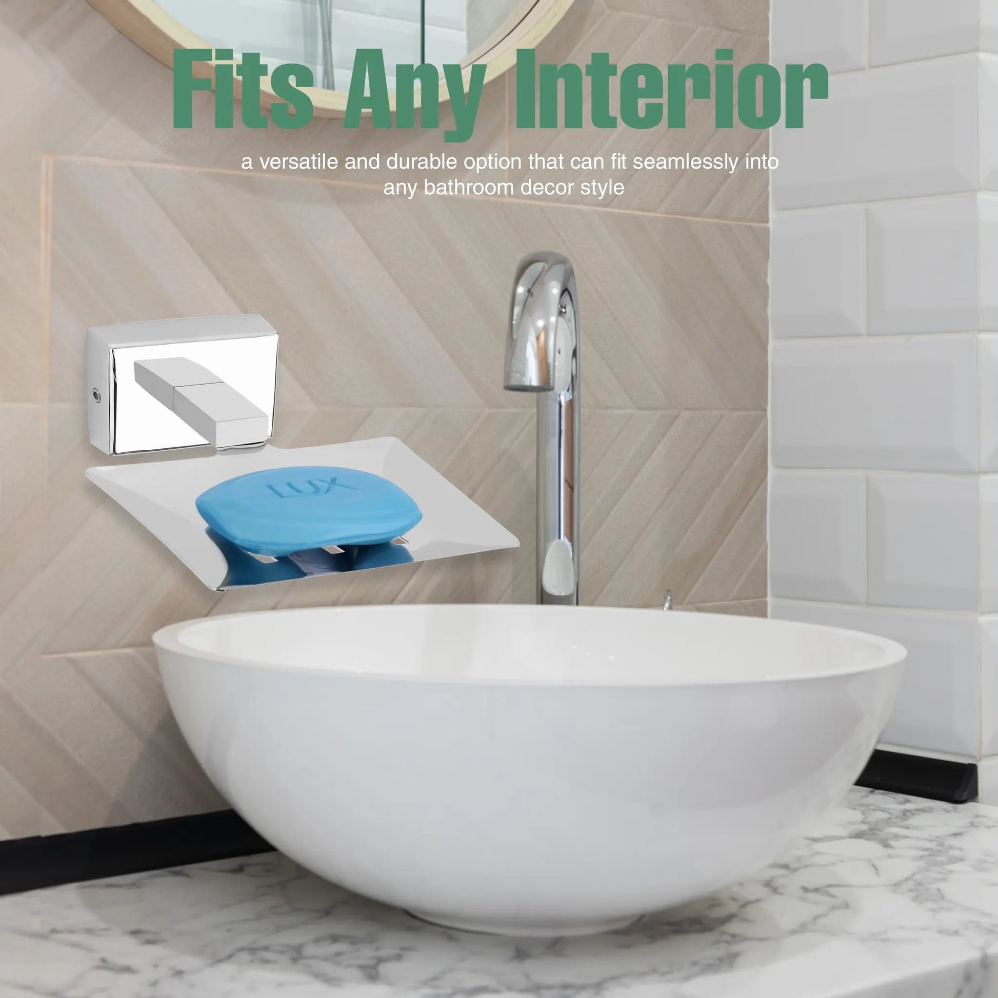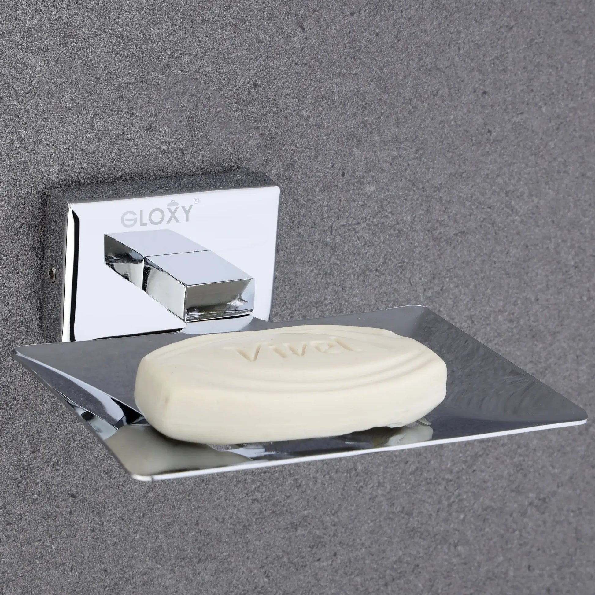 Gloxy Rectangular Shape Stainless 304 Grade Steel Chrome Finish Single Soap Holder