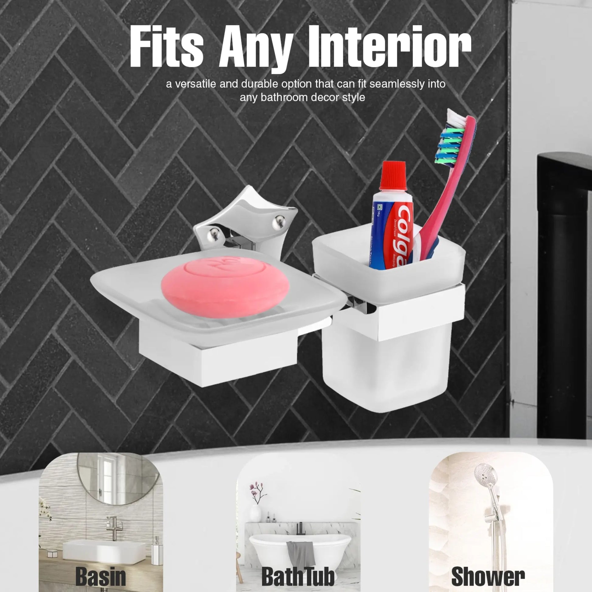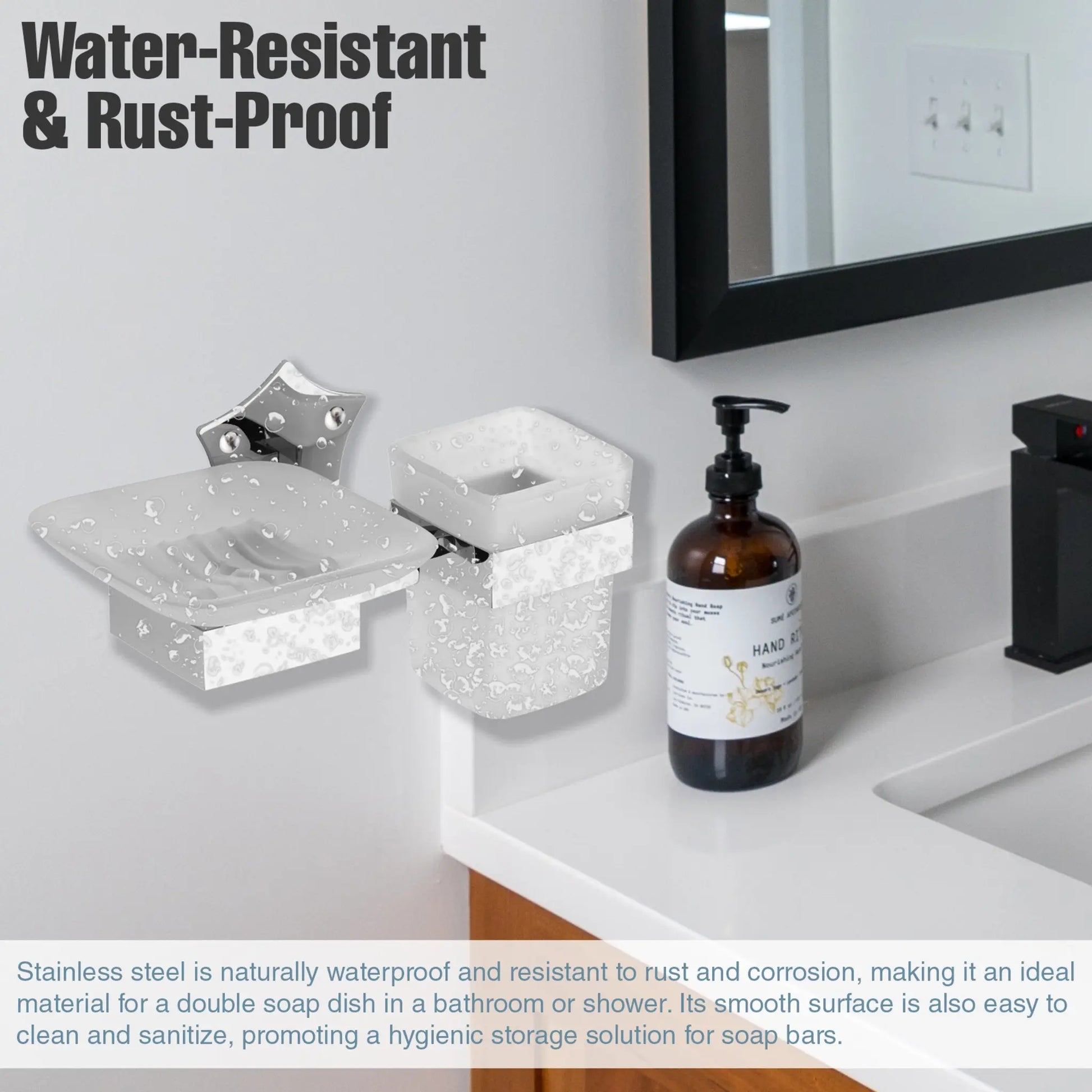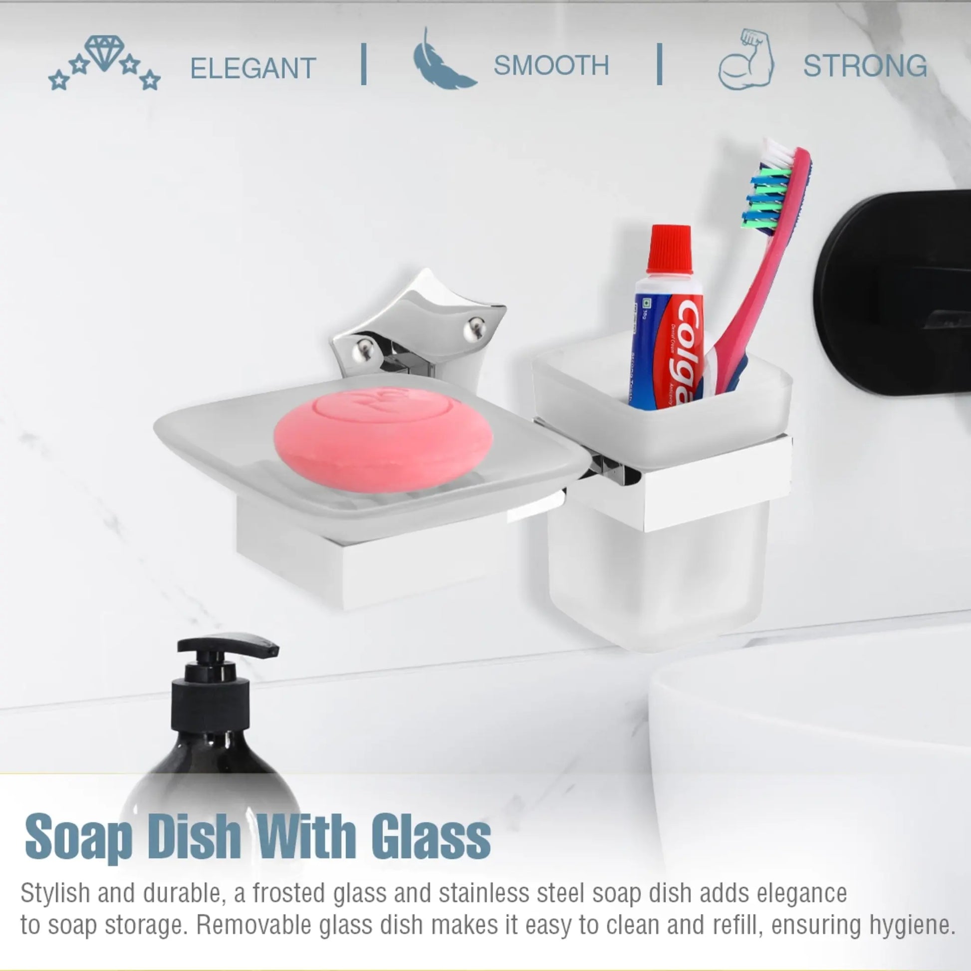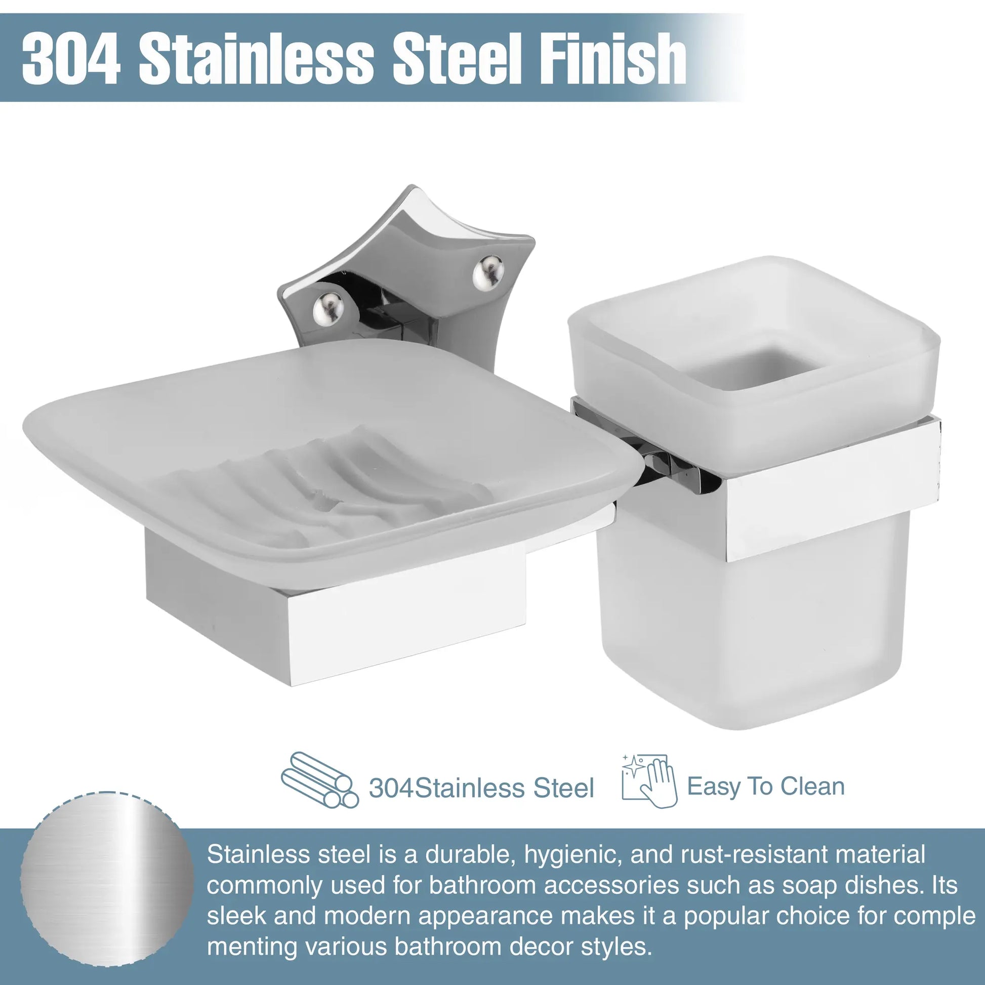 - High-quality stainless steel soap holder.