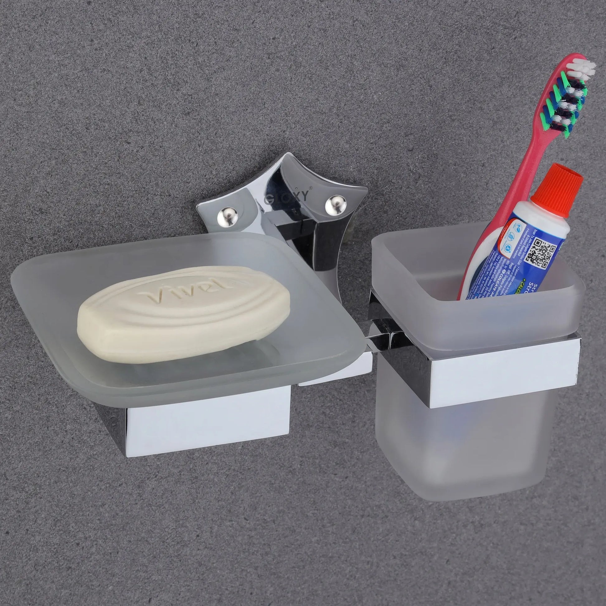Gloxy Star Shape Stainless Steel 304 Grade Chrome Finish Single Glass Soap Holder and Tumbler Holder