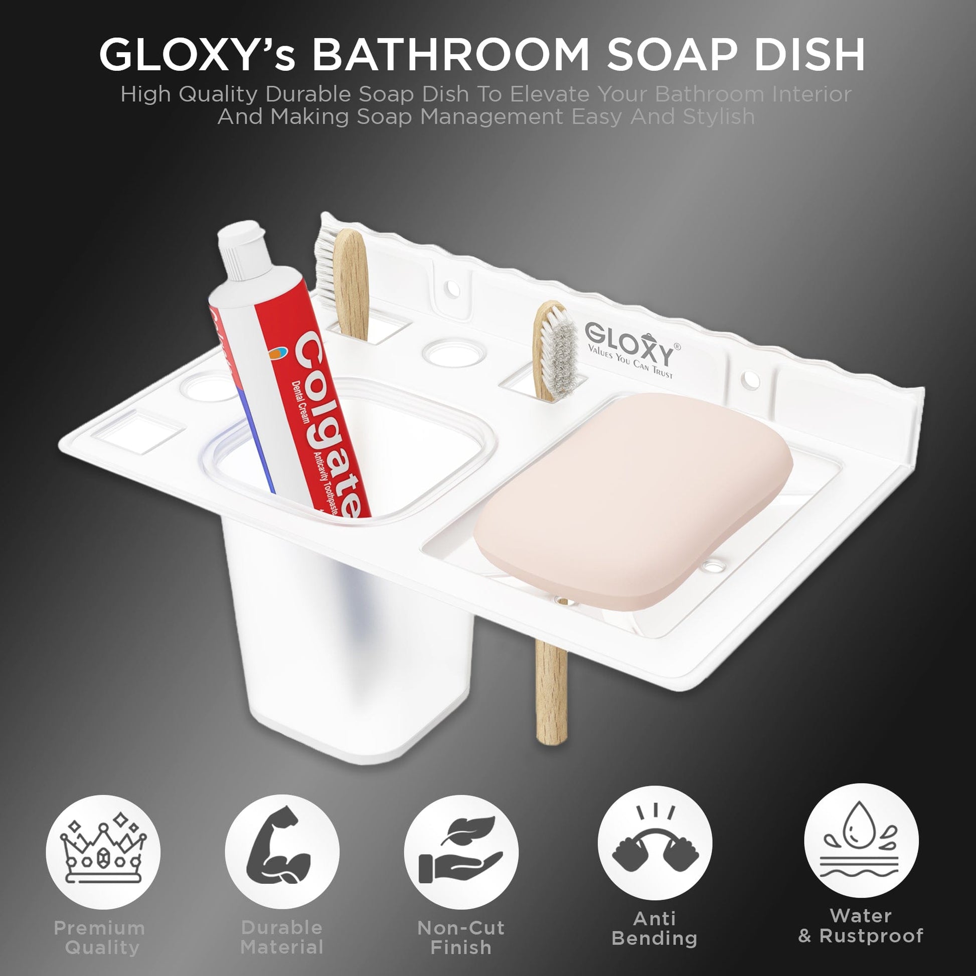 Unbreakable Acrylic Toothbrush Tumbler Holder with Soap Dish – Gloxy Skip to content