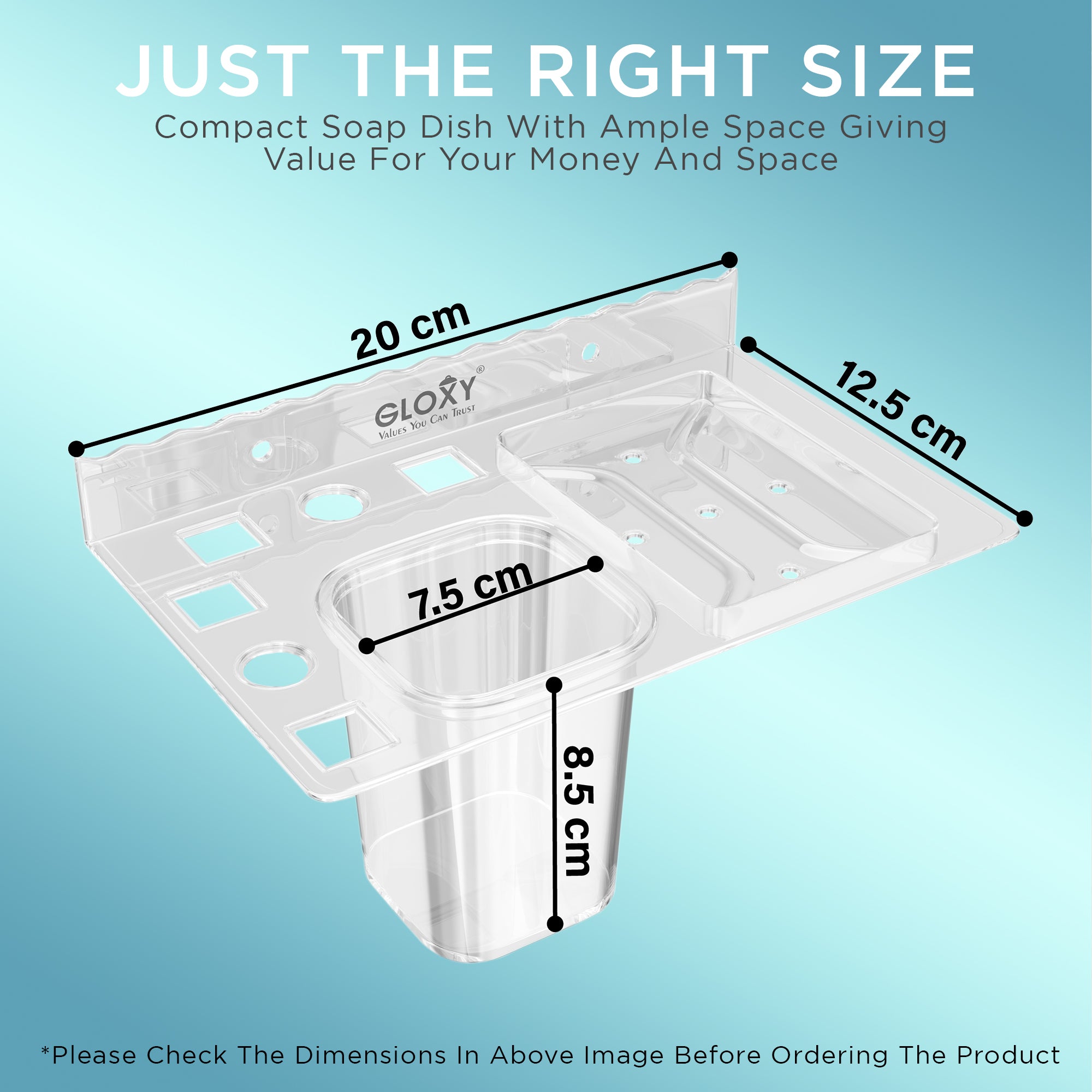 Gloxy Acrylic Transparent Single Soap Holder With Toothbrush & Tumbler Holder