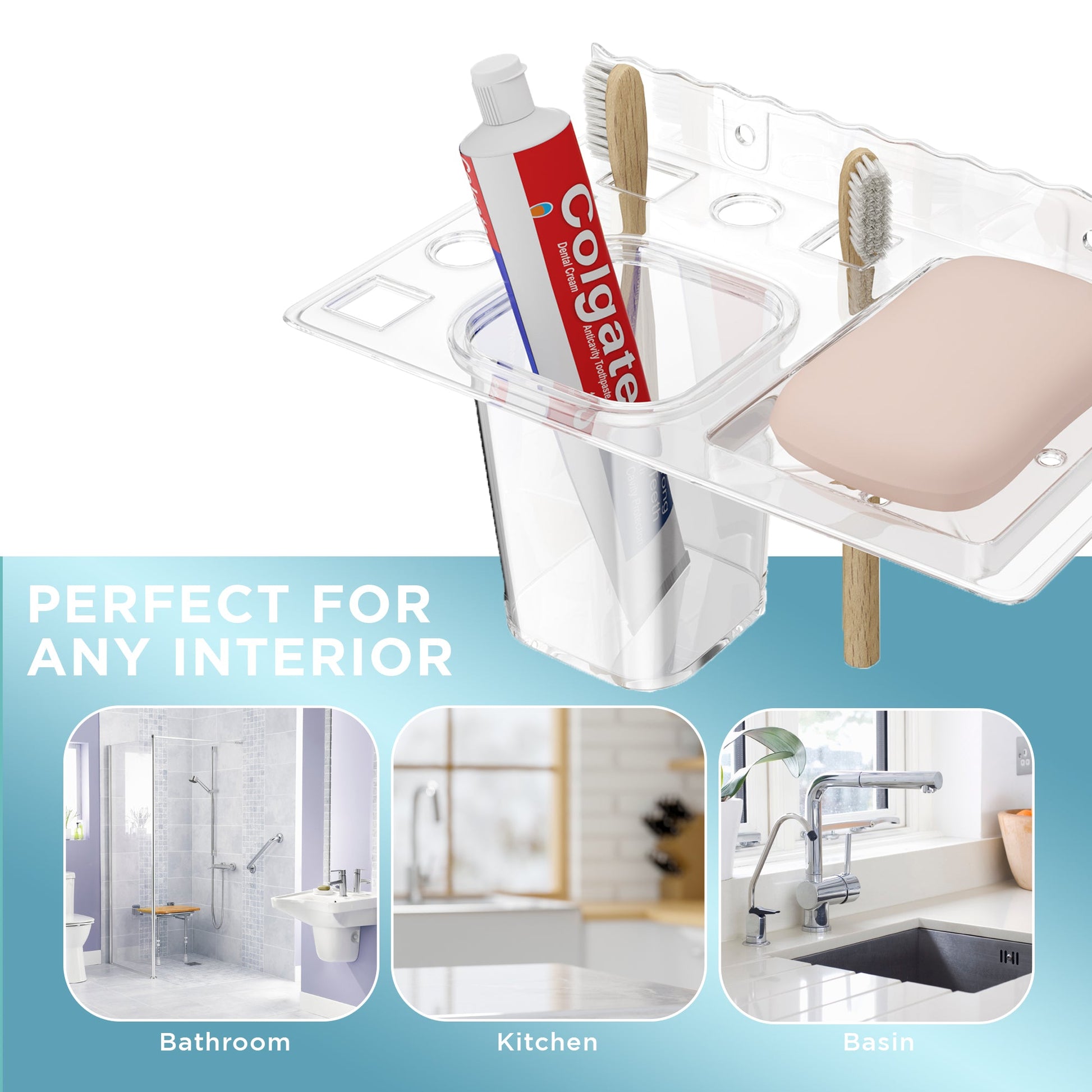 Unbreakable Transparent Wall Mount Acrylic Toothbrush & Tumbler Holder with Soap Dish